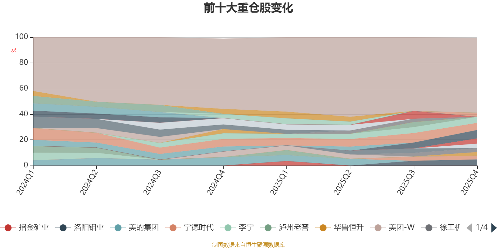 截至2025年四季度末,基金十大重仓股分别是中国黄金国际、腾讯控股、洛阳钼业、紫金矿业、思源电气、中国宏桥、中国太保、徐工机械、宁德时代、华鲁恒升。