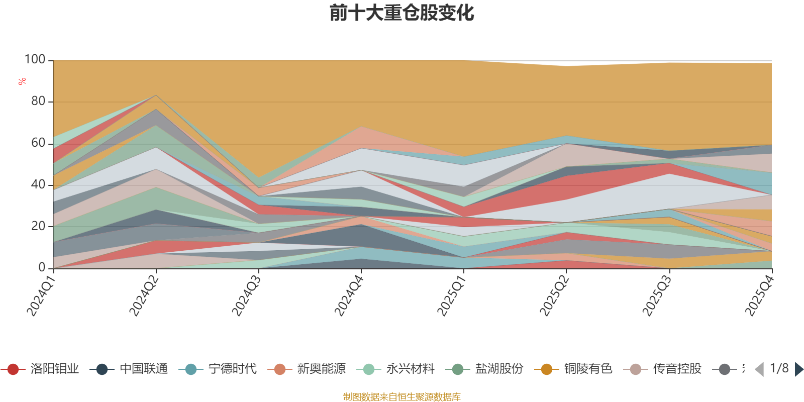 截至2025年四季度末,基金十大重仓股分别是中国平安、中国太保、中信证券、国泰海通、万华化学、铜陵有色、嘉友国际、藏格矿业、盐湖股份、华泰证券。