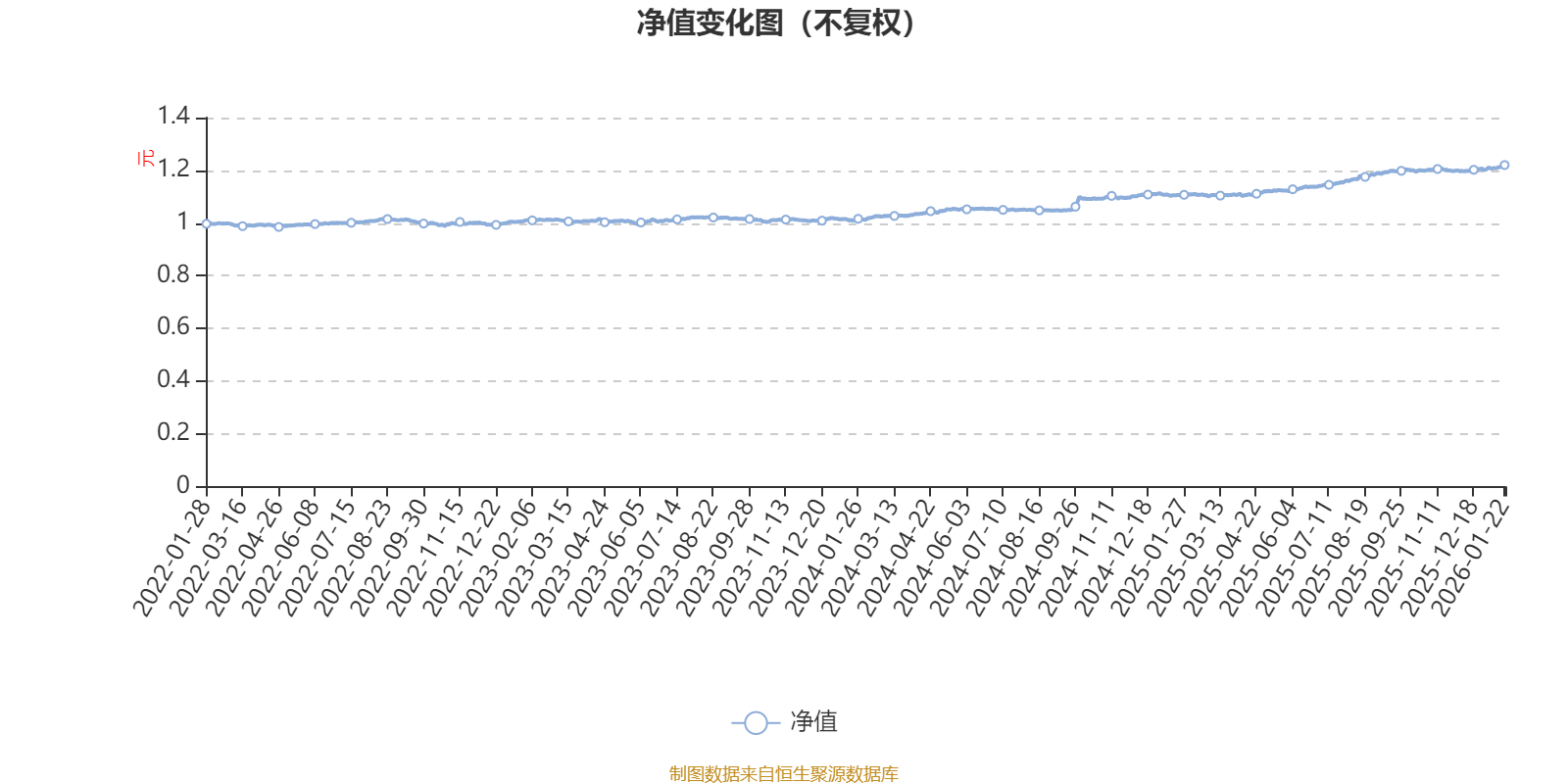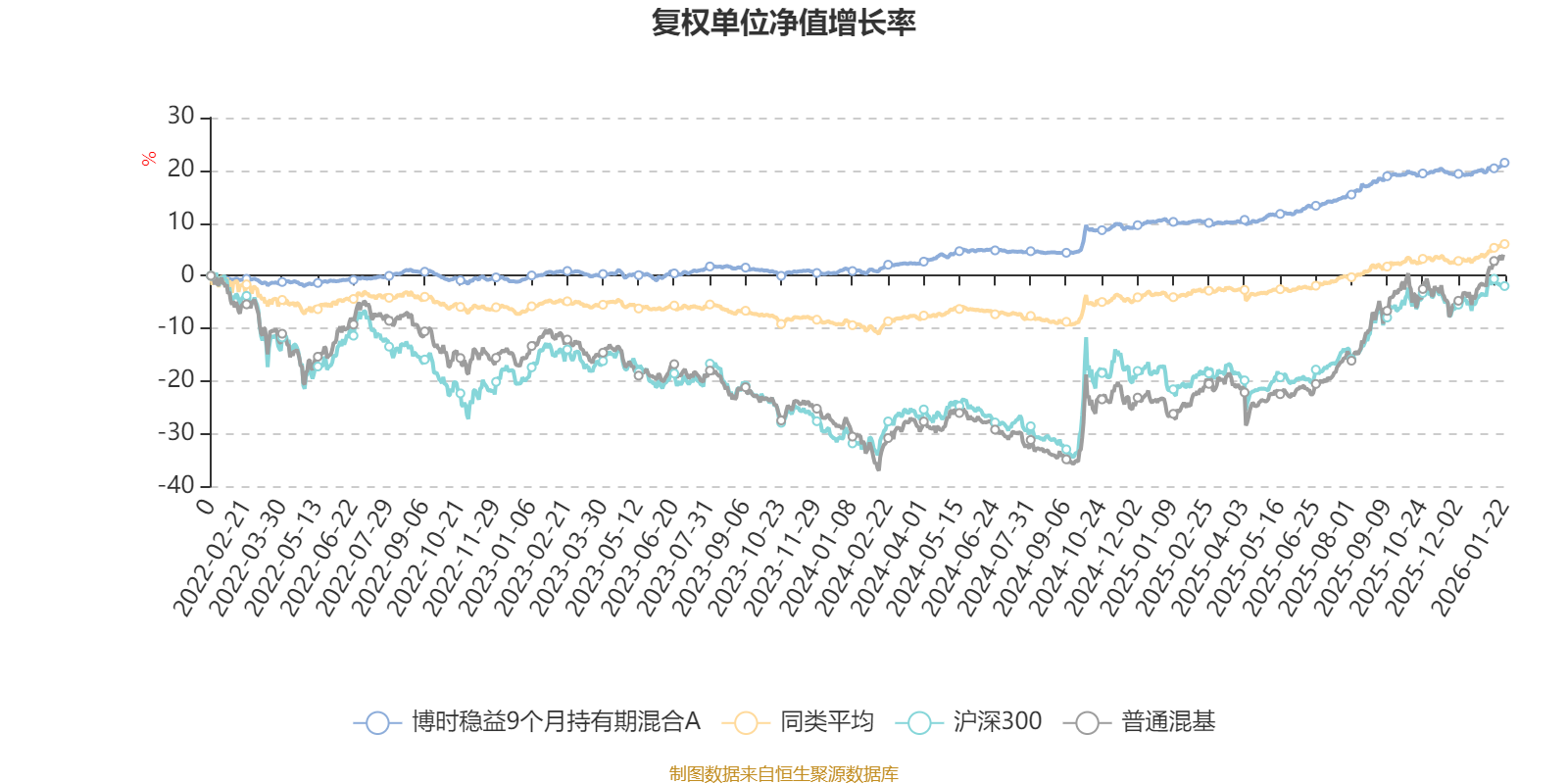 该基金属于偏债混合型基金。截至1月22日,单位净值为1.22元。基金经理是张李陵和江海峰,目前共同管理的3只基金近一年均为正收益。其中,截至1月22日,博时稳益9个月持有期混合A近一年复权单位净值增长率最高,达10.4%;博时恒乐债券A最低,为9.02%。