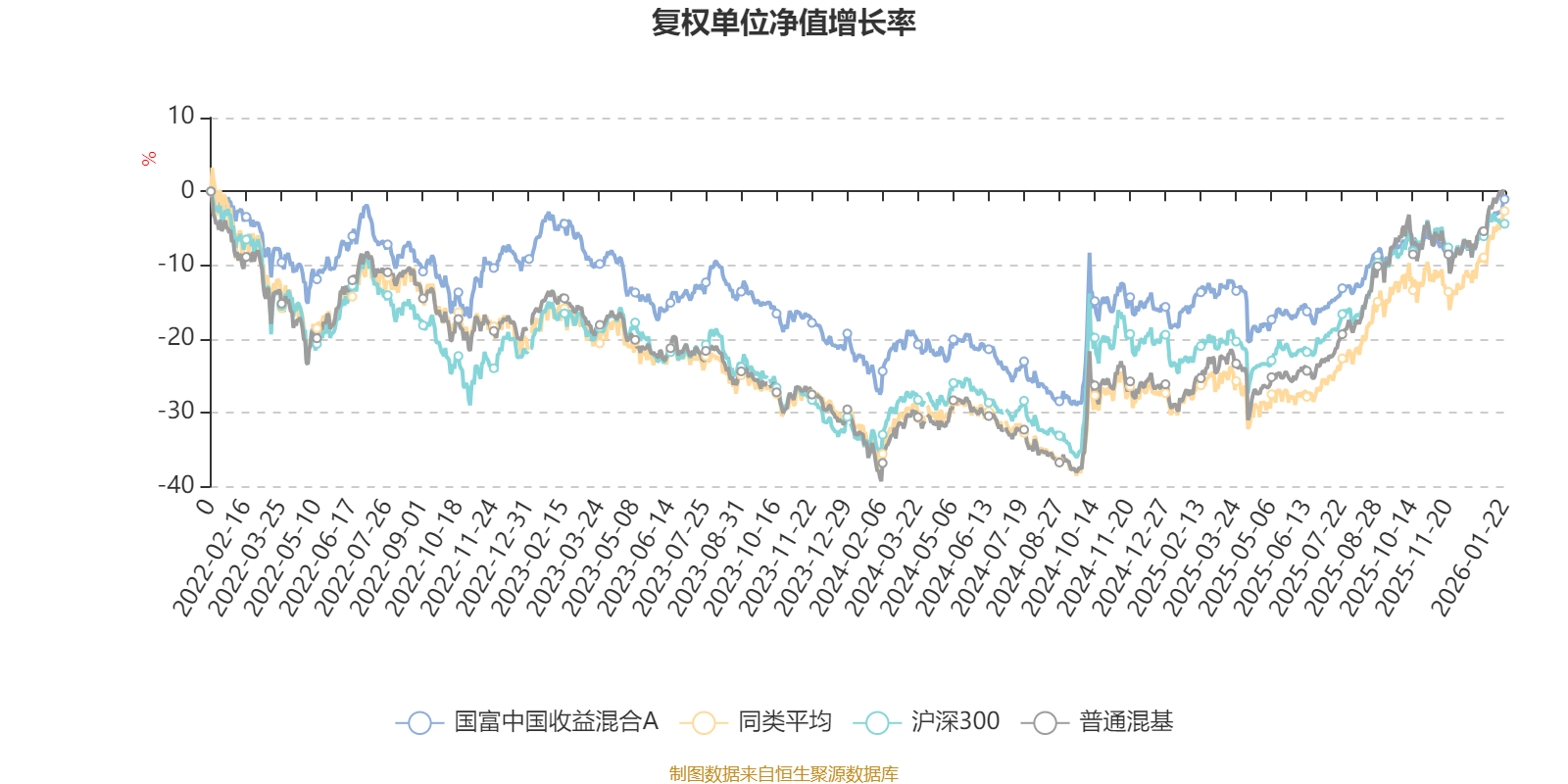 截至1月22日,国富中国收益混合A近三个月复权单位净值增长率为7.06%,位于同类可比基金77/134;近半年复权单位净值增长率为13.89%,位于同类可比基金87/134;近一年复权单位净值增长率为18.28%,位于同类可比基金93/131;近三年复权单位净值增长率为2.22%,位于同类可比基金102/124。