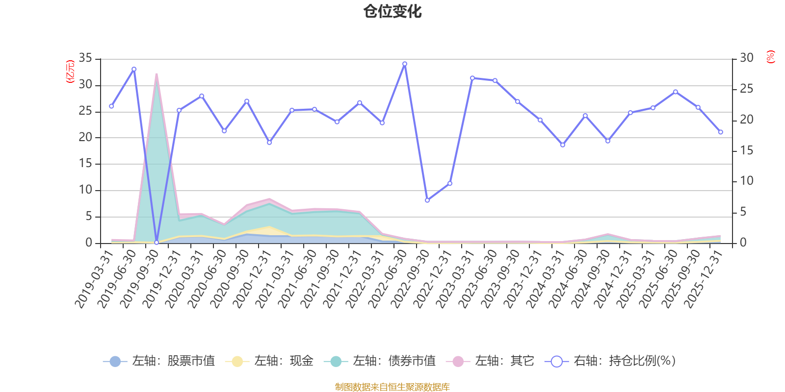 据定期报告数据统计,近三年平均股票仓位为21.5%,同类平均为19.2%。2022年上半年末基金达到29.18%的最高仓位,2019年三季度末最低,为0.14%。
