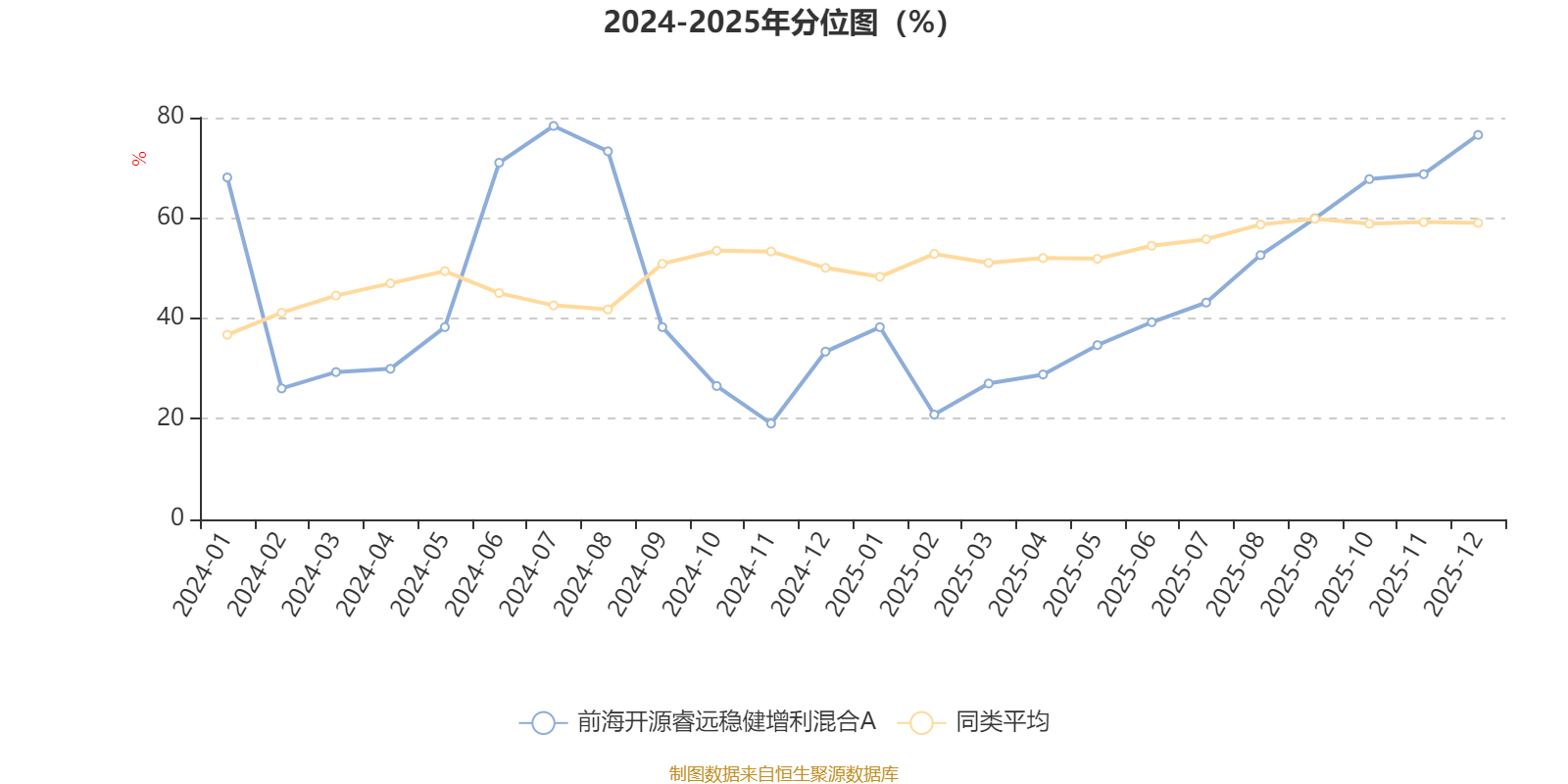 通过所选区间该基金净值增长率分位图,可以观察该基金与同类基金业绩比较情况。图为坐标原点到区间内某时点的净值增长率在同类基金中的分位数。