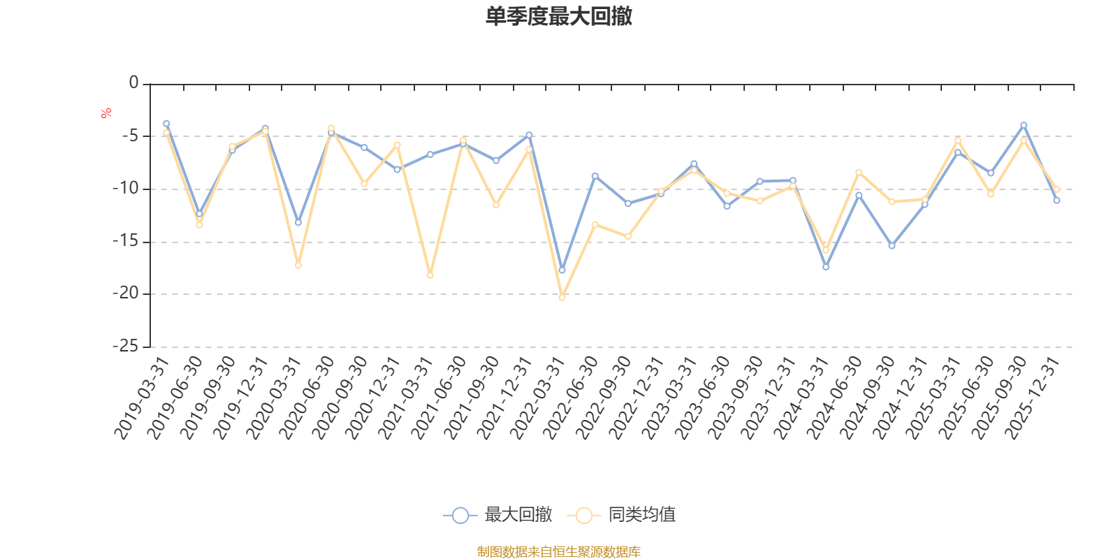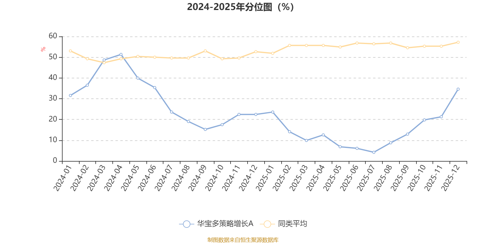 通过所选区间该基金净值增长率分位图,可以观察该基金与同类基金业绩比较情况。图为坐标原点到区间内某时点的净值增长率在同类基金中的分位数。