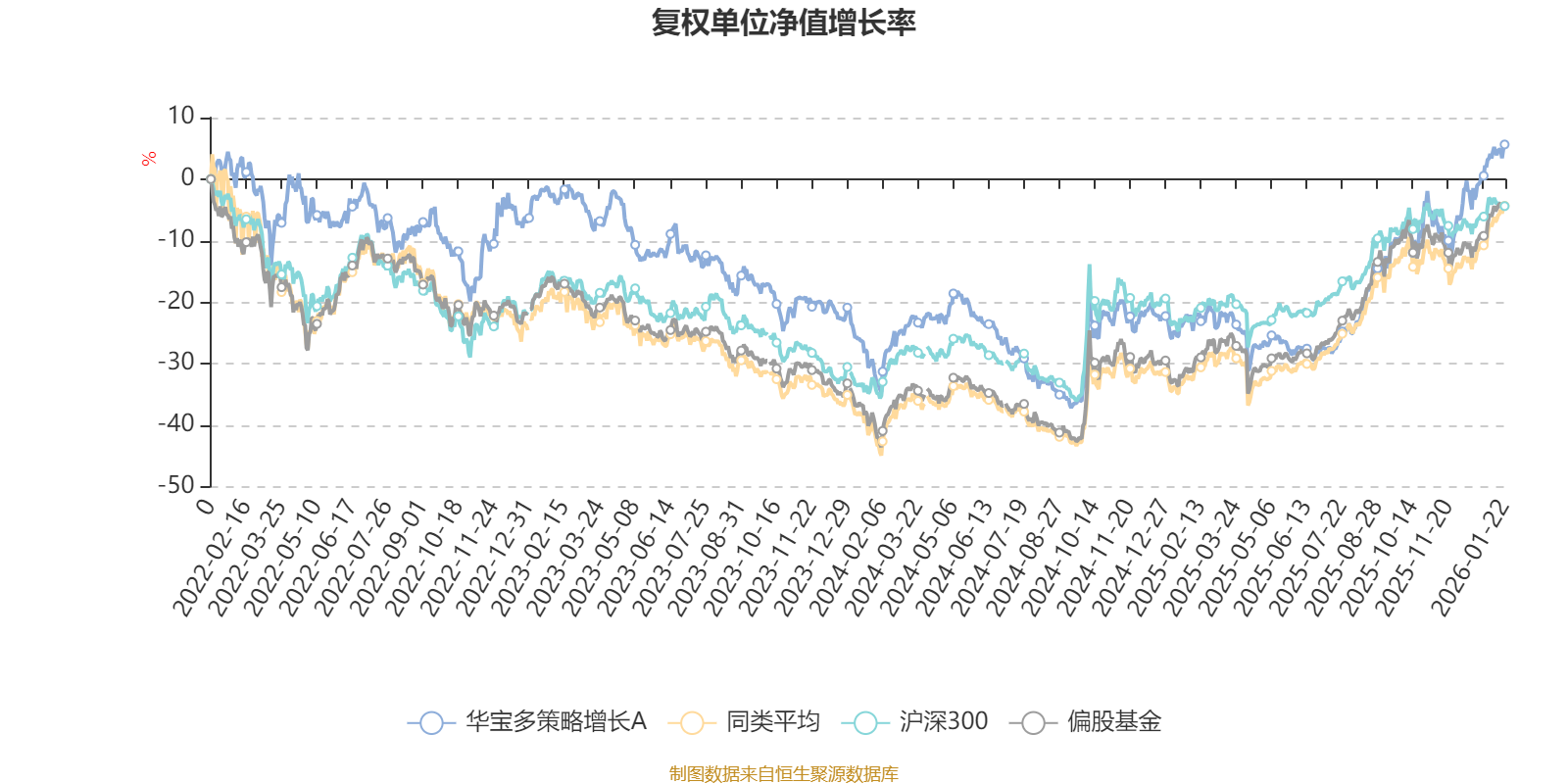 截至1月22日,华宝多策略增长A近三个月复权单位净值增长率为16.28%,位于同类可比基金38/265;近半年复权单位净值增长率为40.45%,位于同类可比基金40/265;近一年复权单位净值增长率为36.13%,位于同类可比基金153/265;近三年复权单位净值增长率为7.03%,位于同类可比基金187/256。