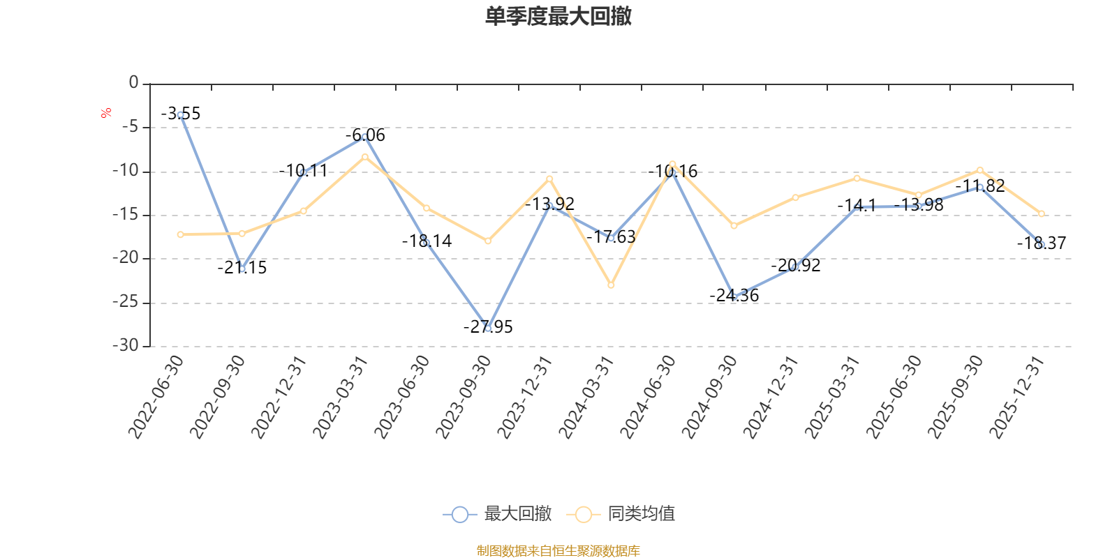 截至1月22日,基金近三年最大回撤为48.35%,同类可比基金排名129/165。单季度最大回撤出现在2023年三季度,为27.95%。