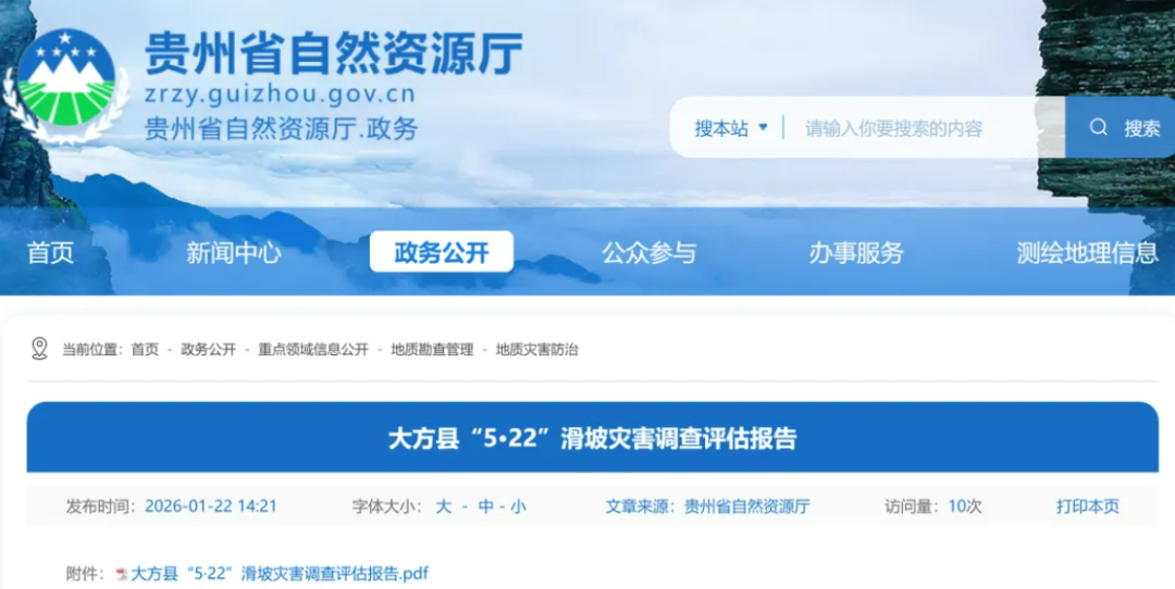 据新华社消息,贵州省自然资源厅近日通报大方县“5·22”滑坡的调查结果。调查指出,滑坡原因主要为山体结构不稳,加之极端强降雨诱发,导致灾害发生。