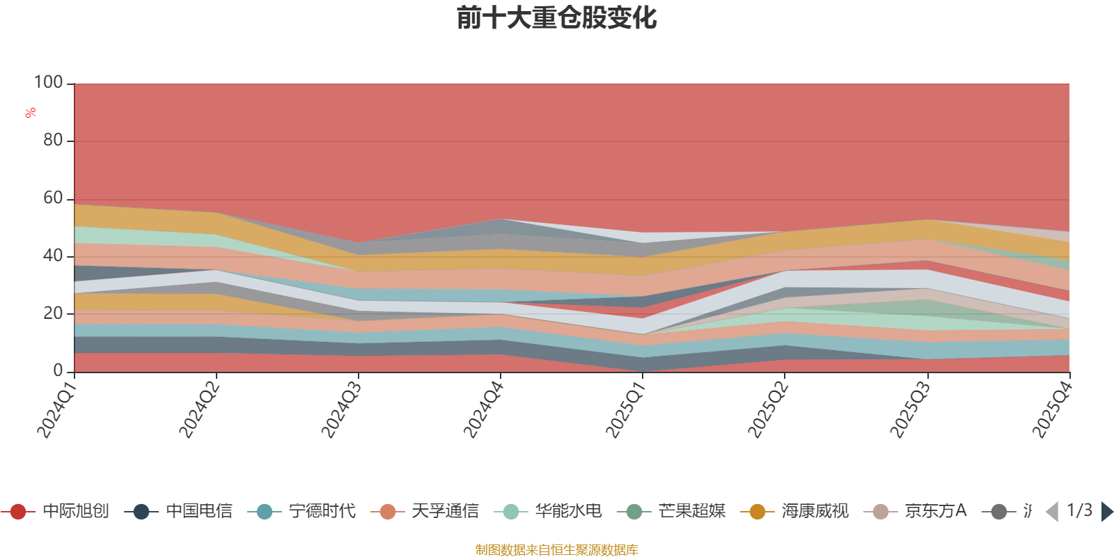 截至2025年四季度末,基金十大重仓股分别是中国移动、长江电力、新易盛、中际旭创、宁德时代、世纪华通、天孚通信、京东方A、立讯精密、源杰科技。