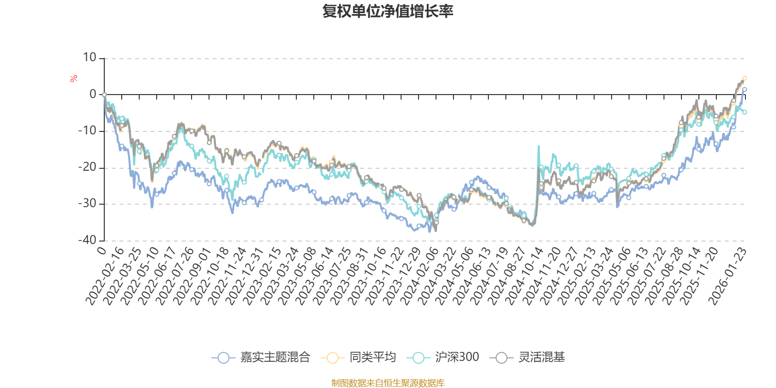 截至1月23日,嘉实主题混合近三个月复权单位净值增长率为19.34%,位于同类可比基金187/1286;近半年复权单位净值增长率为30.85%,位于同类可比基金450/1286;近一年复权单位净值增长率为41.60%,位于同类可比基金512/1286;近三年复权单位净值增长率为33.22%,位于同类可比基金360/1286。