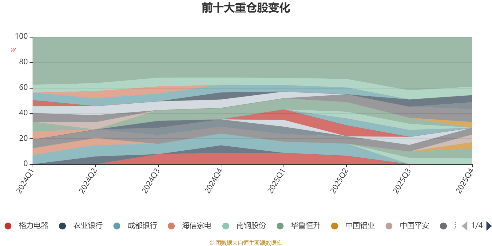 该基金持股集中度较高。截至2025年四季度末,基金十大重仓股分别是紫金矿业、华鲁恒升、纽威股份、中国平安、宁德时代、山金国际、海信视像、中国铝业、云铝股份、南钢股份。