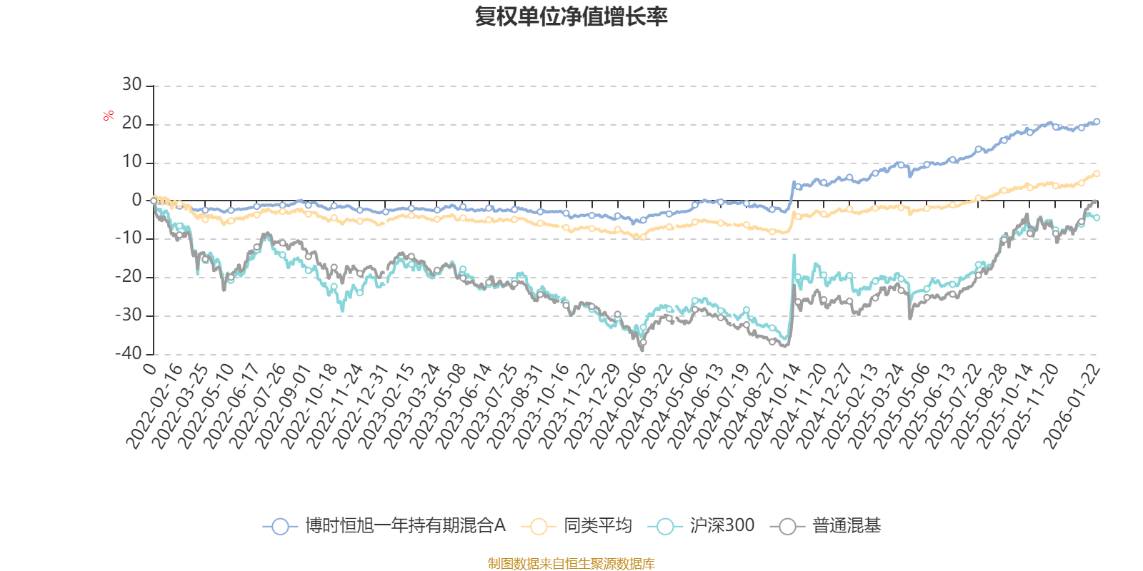 截至1月22日,博时恒旭一年持有期混合A近三个月复权单位净值增长率为2.05%,位于同类可比基金330/629;近半年复权单位净值增长率为6.33%,位于同类可比基金174/629;近一年复权单位净值增长率为14.47%,位于同类可比基金92/626;近三年复权单位净值增长率为23.18%,位于同类可比基金56/564。