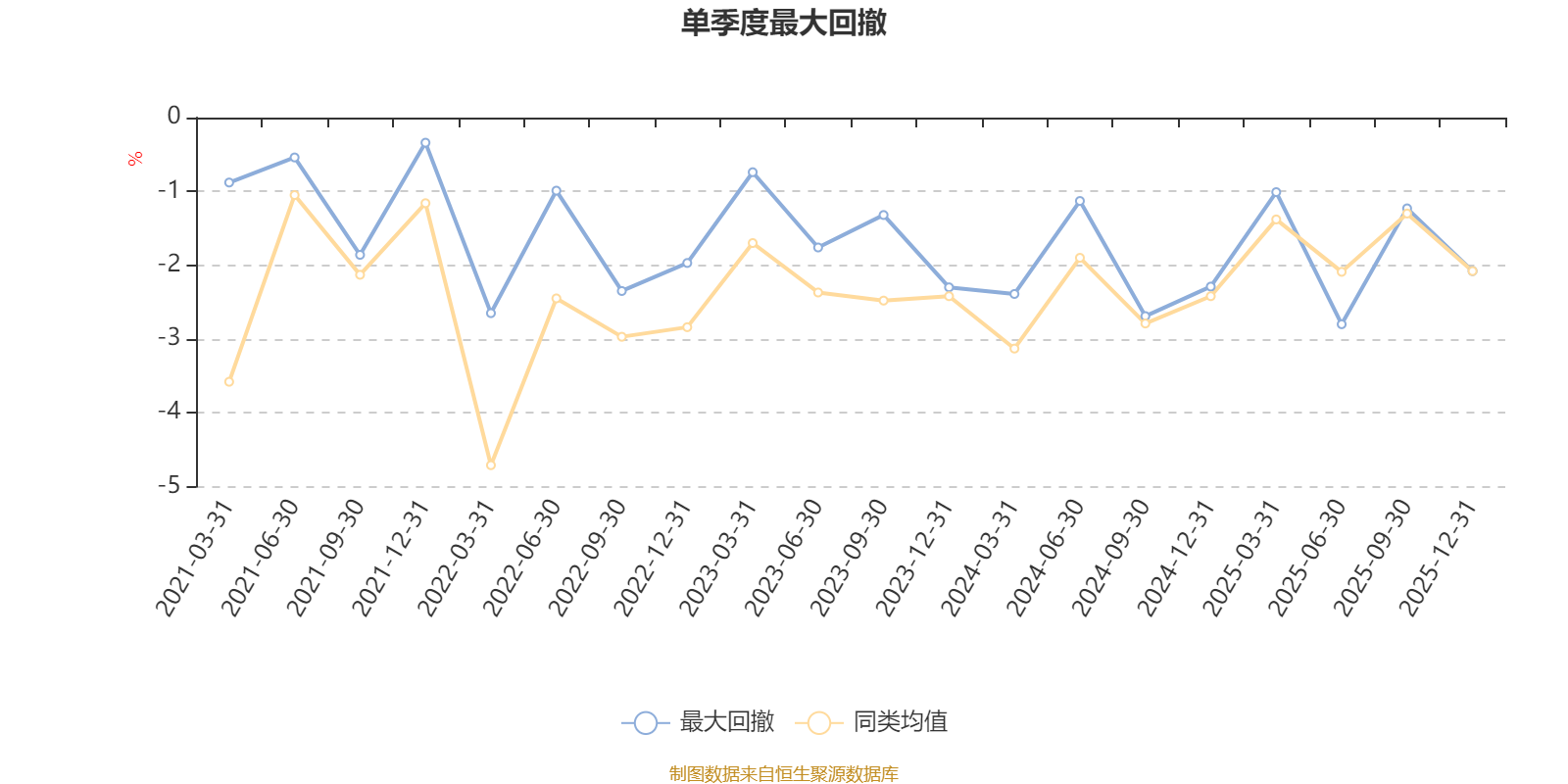 截至1月22日,基金近三年最大回撤为5.17%,同类可比基金排名202/527。单季度最大回撤出现在2025年二季度,为2.8%。
