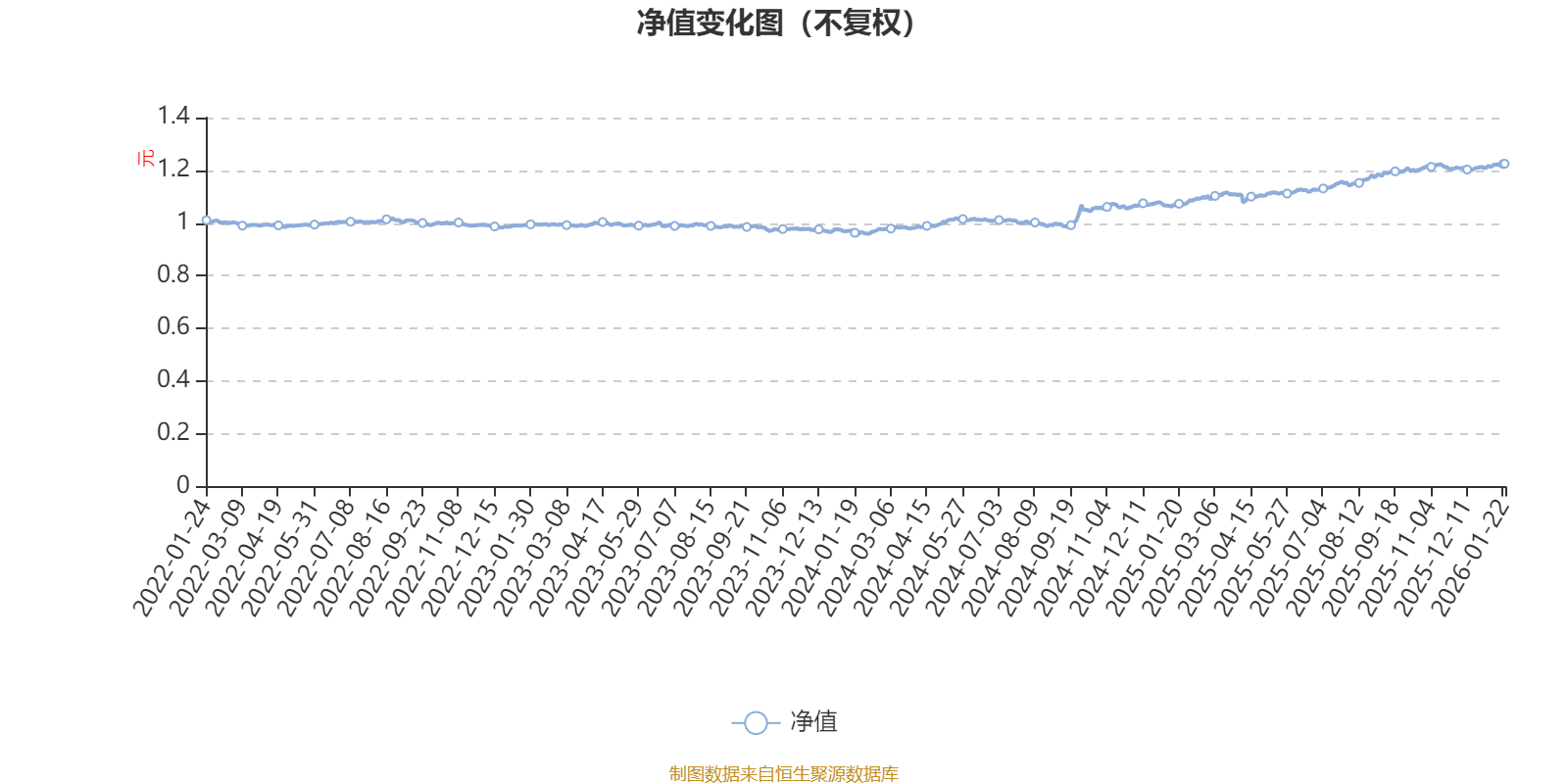 该基金属于偏债混合型基金。截至1月22日,单位净值为1.225元。基金经理是静鹏,目前管理的3只基金近一年均为正收益。其中,截至1月22日,博时恒旭一年持有期混合A近一年复权单位净值增长率最高,达14.48%;博时恒泰债券A最低,为7.62%。