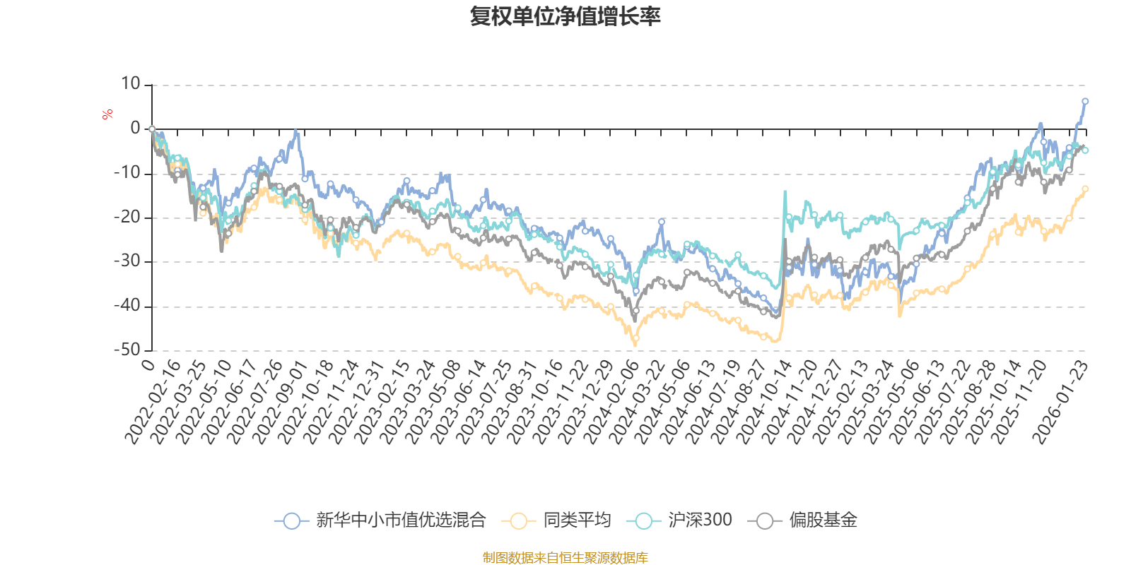 截至1月23日,新华中小市值优选混合近三个月复权单位净值增长率为12.71%,位于同类可比基金272/689;近半年复权单位净值增长率为25.63%,位于同类可比基金333/689;近一年复权单位净值增长率为58.92%,位于同类可比基金135/674;近三年复权单位净值增长率为26.15%,位于同类可比基金140/396。