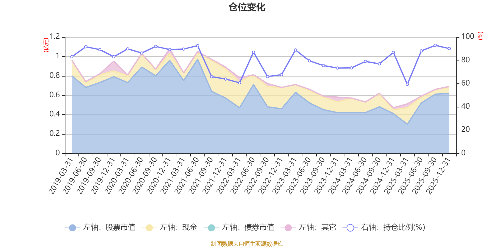 据定期报告数据统计,近三年平均股票仓位为80.32%,同类平均为84.04%。2025年三季度末基金达到92.88%的最高仓位,2025年一季度末最低,为59.32%。