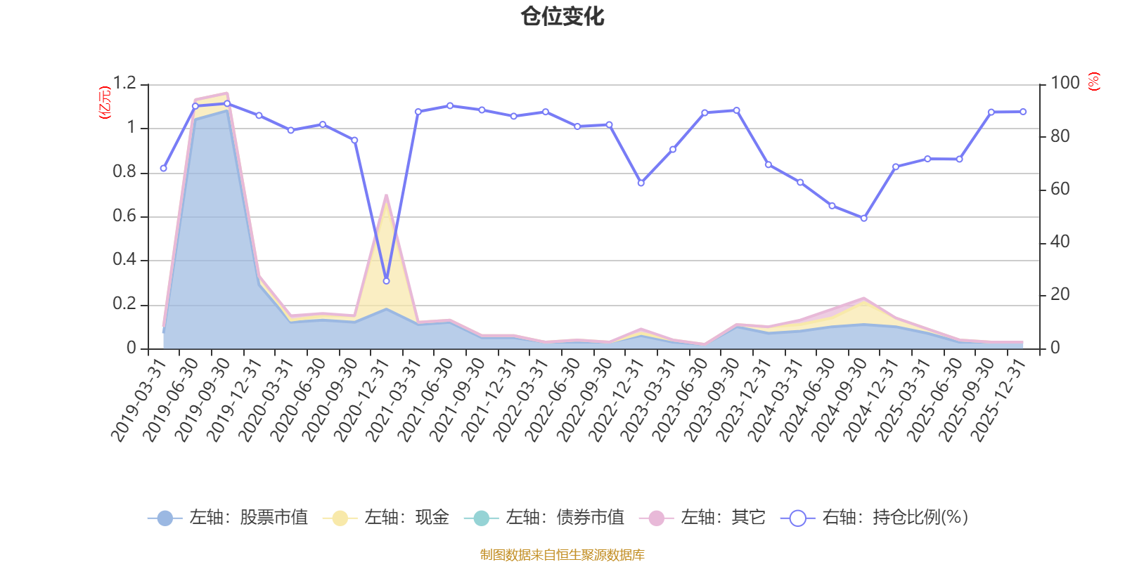 据定期报告数据统计,近三年平均股票仓位为73.52%,同类平均为72.57%。2019年三季度末基金达到92.74%的最高仓位,2020年末最低,为25.63%。
