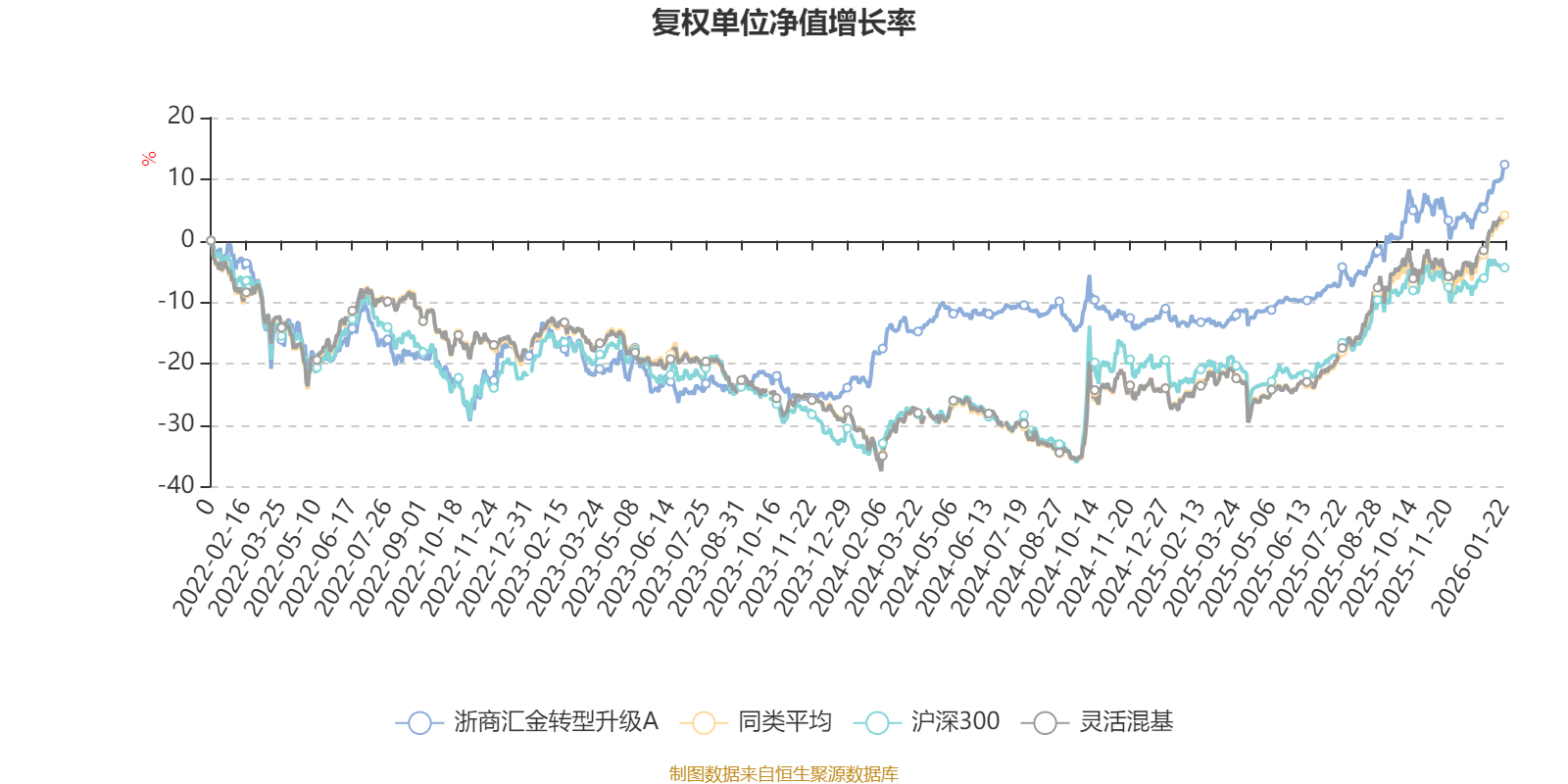 截至1月22日,浙商汇金转型升级A近三个月复权单位净值增长率为7.51%,位于同类可比基金713/1286;近半年复权单位净值增长率为17.42%,位于同类可比基金747/1286;近一年复权单位净值增长率为30.66%,位于同类可比基金681/1286;近三年复权单位净值增长率为30.36%,位于同类可比基金381/1286。