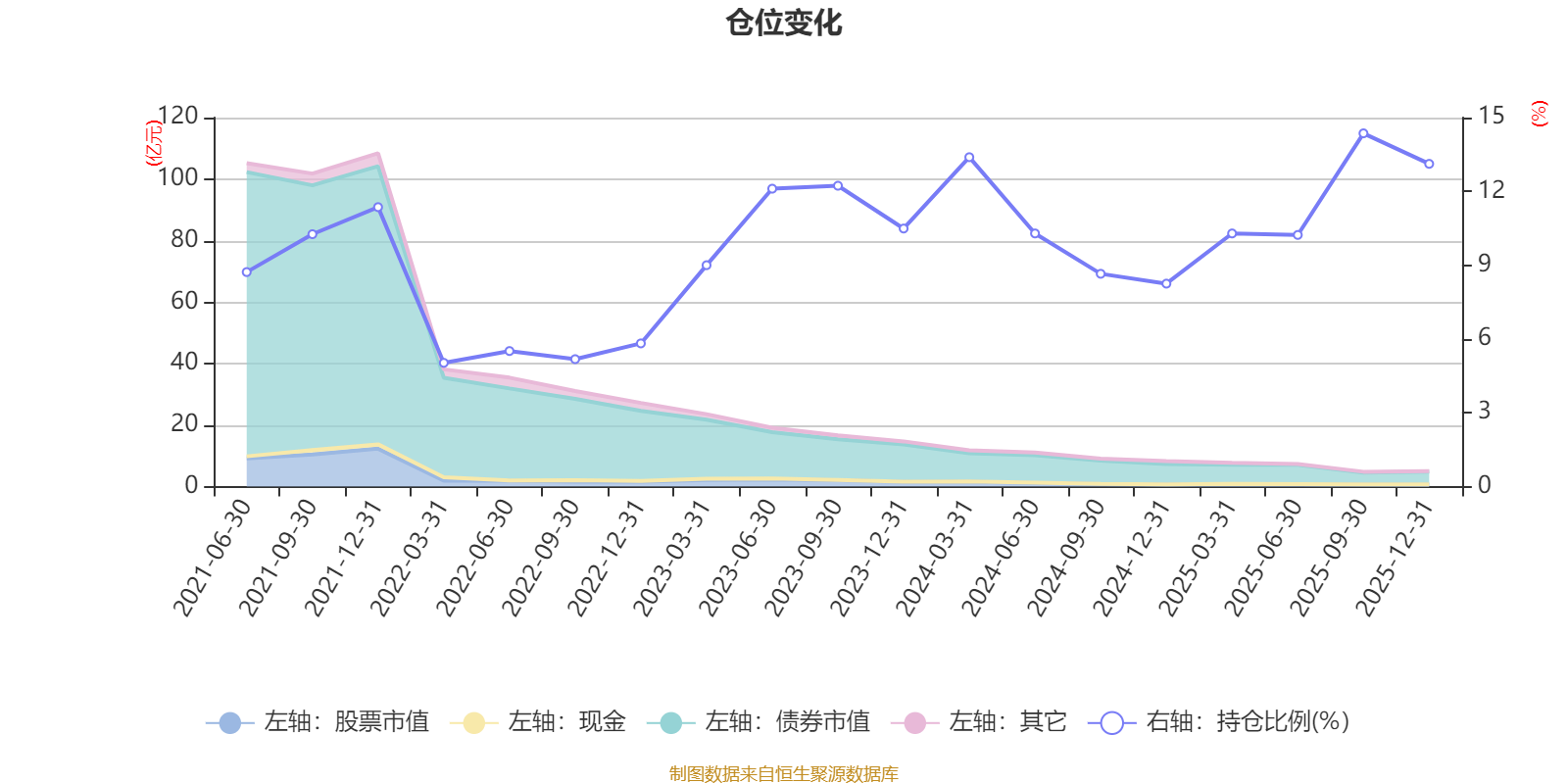 据定期报告数据统计,近三年平均股票仓位为11.03%,同类平均为19.2%。2025年三季度末基金达到14.36%的最高仓位,2022年一季度末最低,为5.03%。