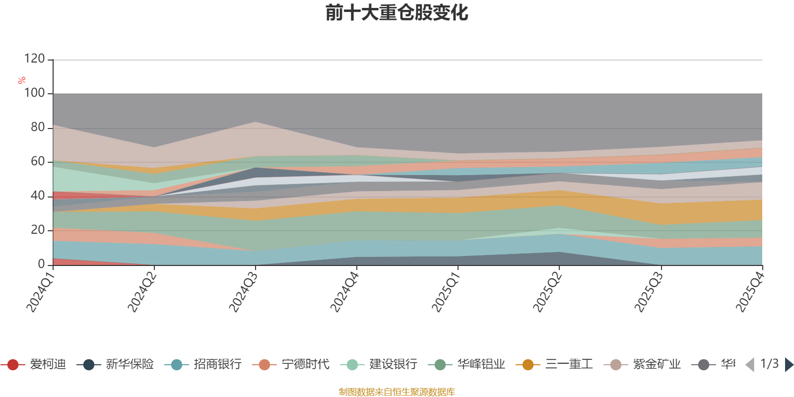 该基金持股集中度较高,近2年前十大重仓股集中度长期超过60%。截至2025年四季度末,基金十大重仓股分别是三一重工、招商银行、华峰铝业、紫金矿业、阿里巴巴-W、中国银行、宁德时代、万华化学、星宇股份、恒立液压。