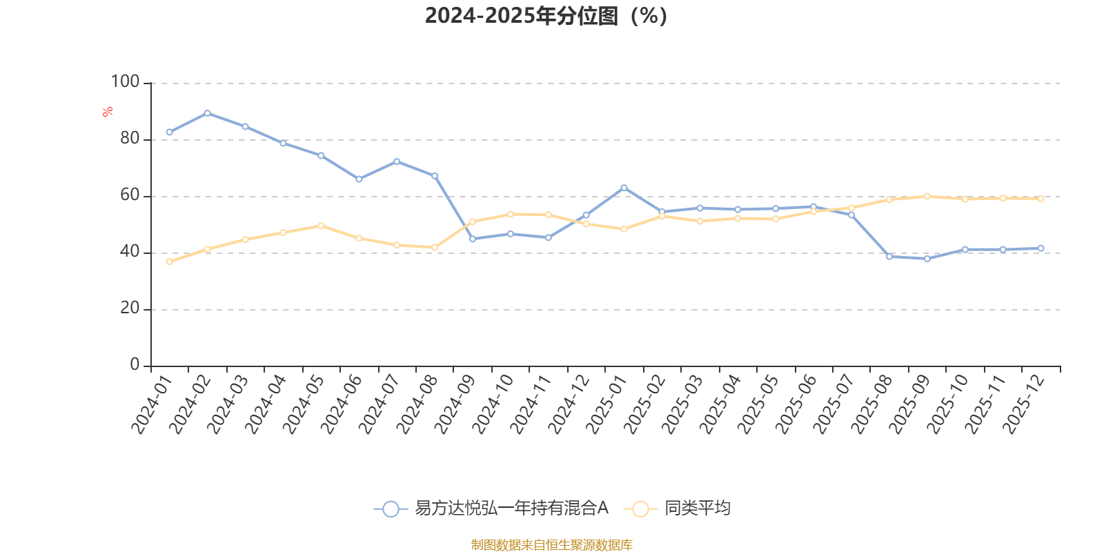通过所选区间该基金净值增长率分位图,可以观察该基金与同类基金业绩比较情况。图为坐标原点到区间内某时点的净值增长率在同类基金中的分位数。