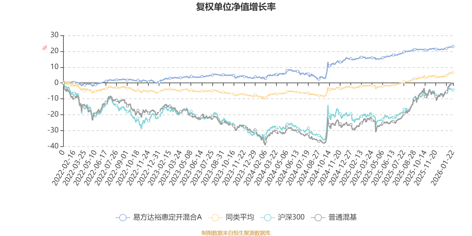 截至1月22日,易方达裕惠定开混合A近三个月复权单位净值增长率为1.80%,位于同类可比基金369/629;近半年复权单位净值增长率为2.80%,位于同类可比基金449/629;近一年复权单位净值增长率为6.62%,位于同类可比基金377/626;近三年复权单位净值增长率为19.82%,位于同类可比基金87/564。