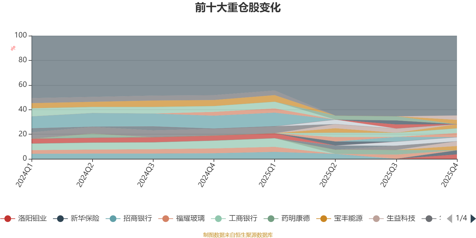 截至2025年四季度末,基金十大重仓股分别是生益科技、紫金矿业、巨化股份、洛阳钼业、中国平安、宝丰能源、新华保险、盛美上海、三一重工、工业富联。