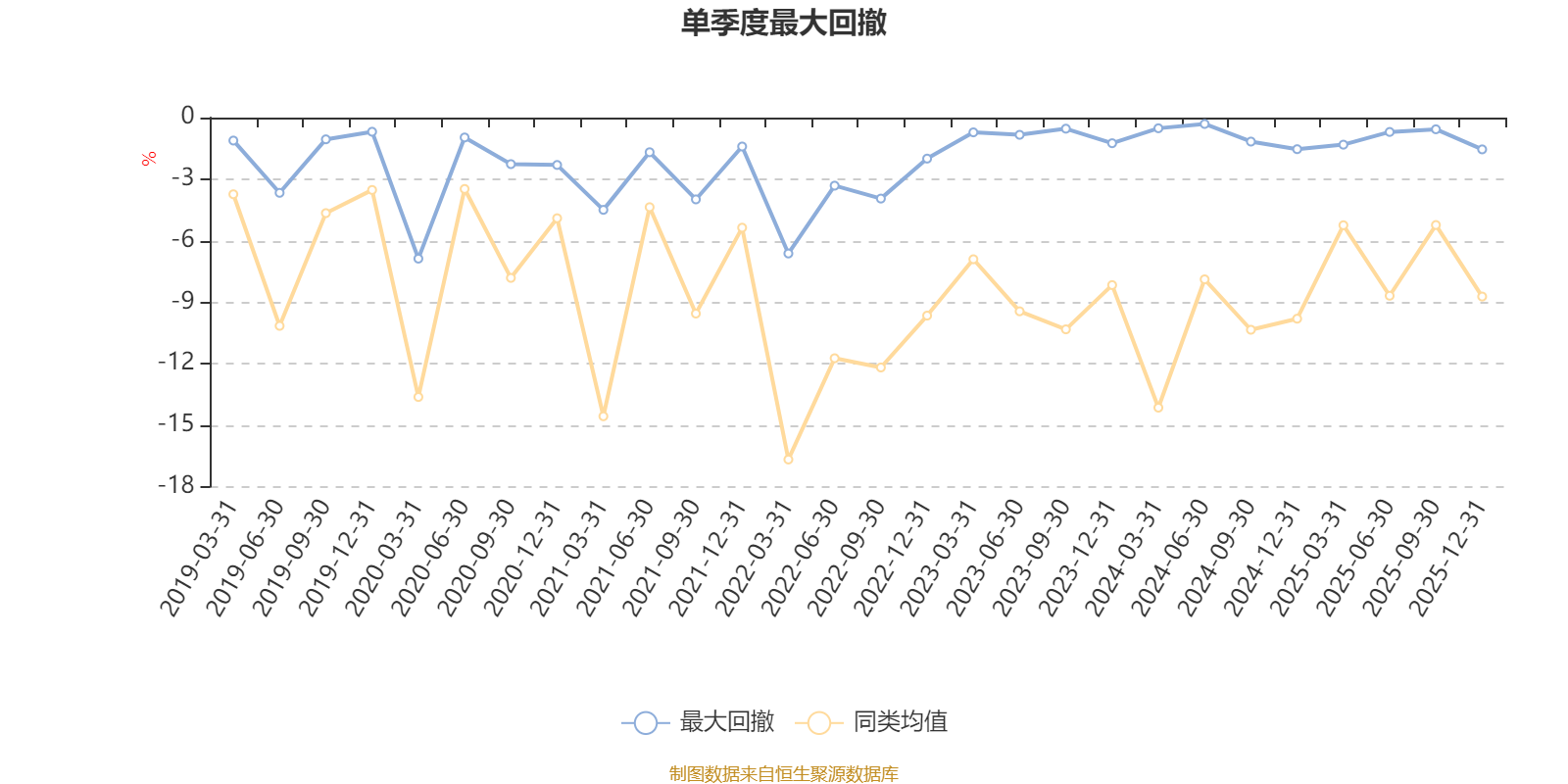 通过所选区间该基金净值增长率分位图,可以观察该基金与同类基金业绩比较情况。图为坐标原点到区间内某时点的净值增长率在同类基金中的分位数。