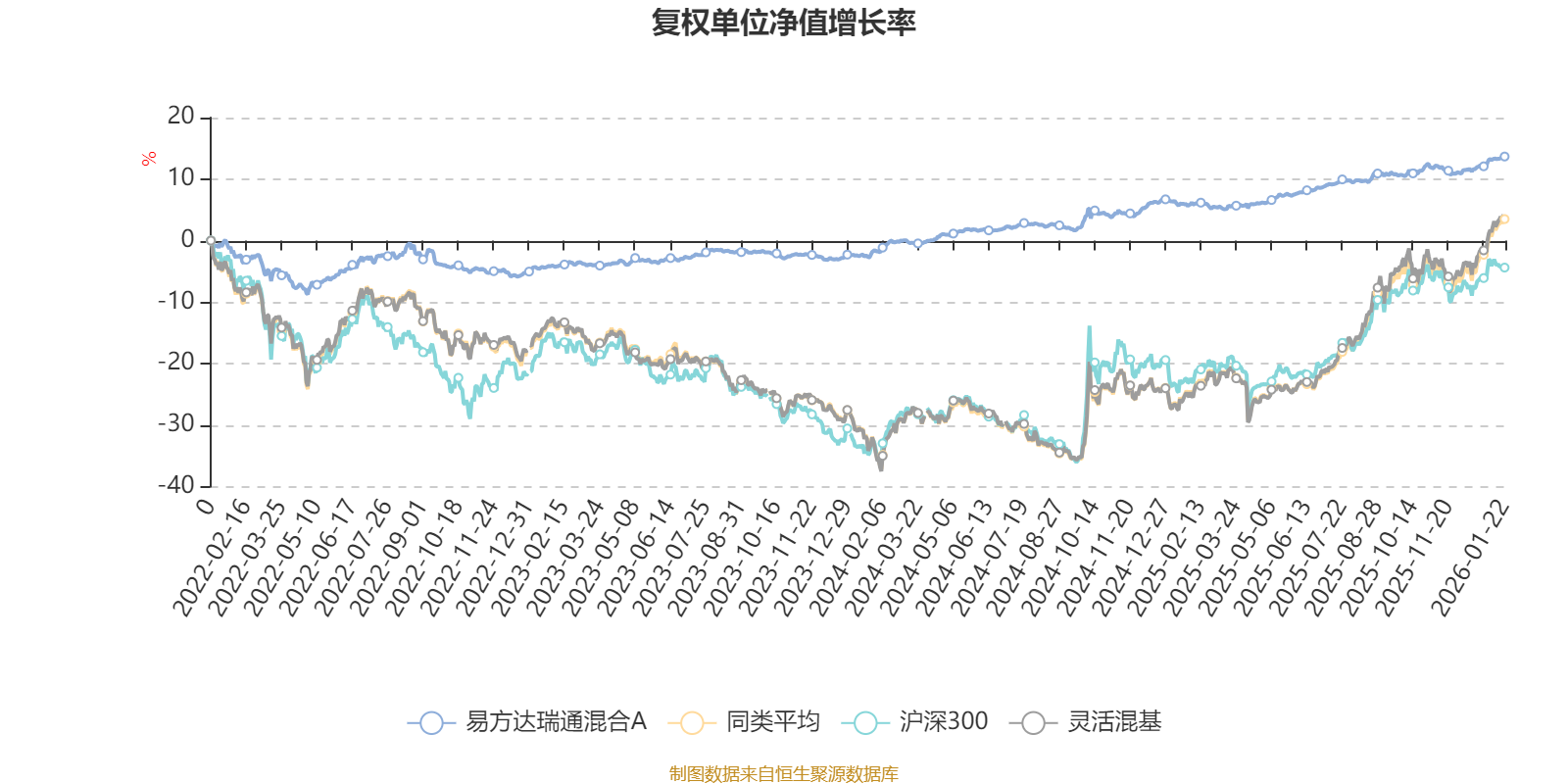 截至1月22日,易方达瑞通混合A近三个月复权单位净值增长率为2.10%,位于同类可比基金1030/1286;近半年复权单位净值增长率为3.39%,位于同类可比基金1114/1286;近一年复权单位净值增长率为7.63%,位于同类可比基金1137/1286;近三年复权单位净值增长率为18.70%,位于同类可比基金577/1286。