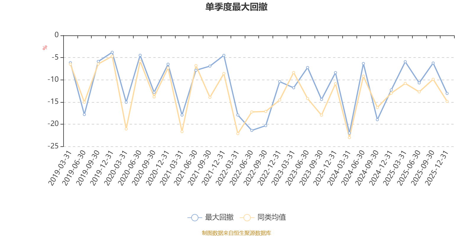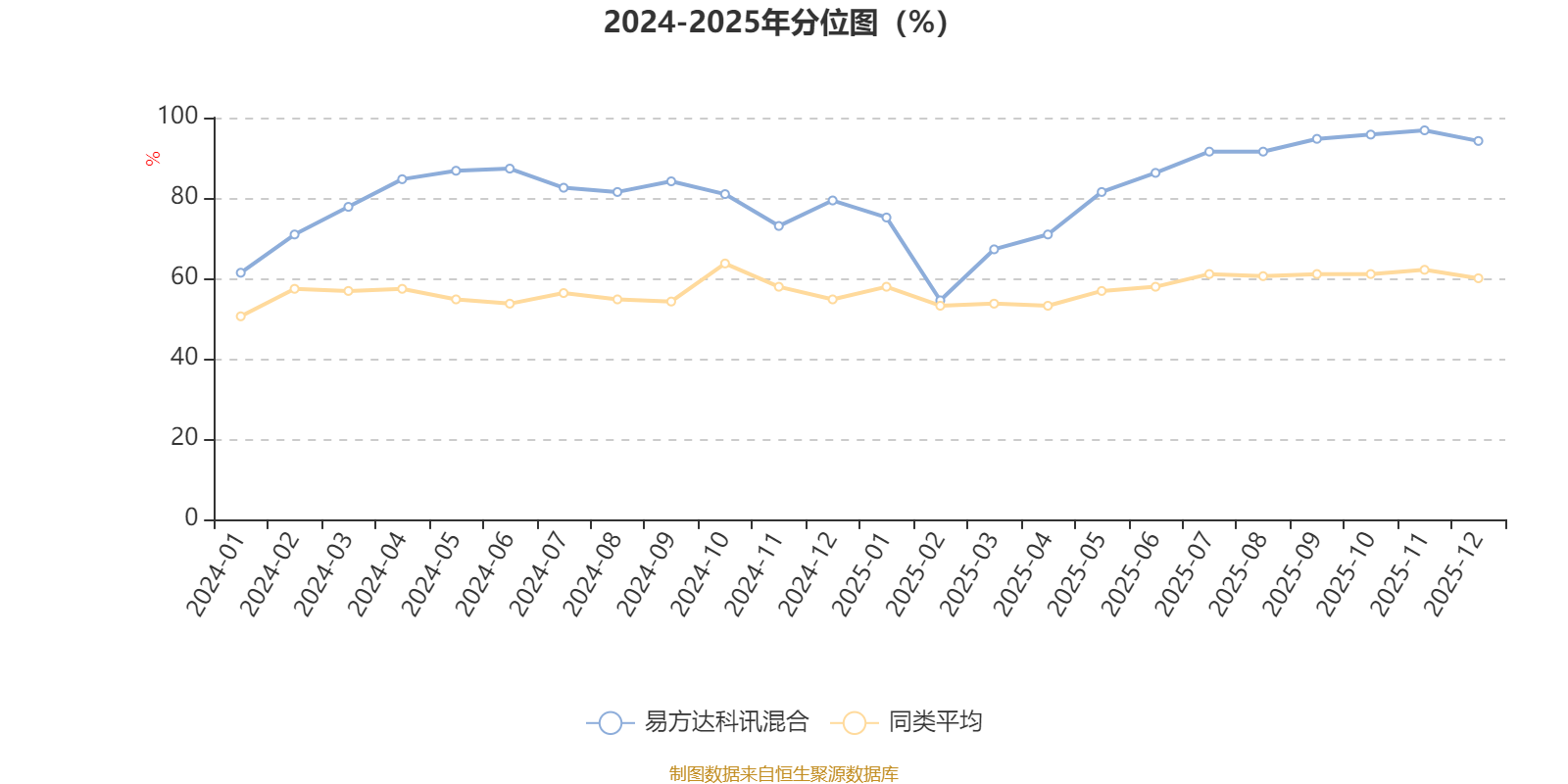通过所选区间该基金净值增长率分位图,可以观察该基金与同类基金业绩比较情况。图为坐标原点到区间内某时点的净值增长率在同类基金中的分位数。