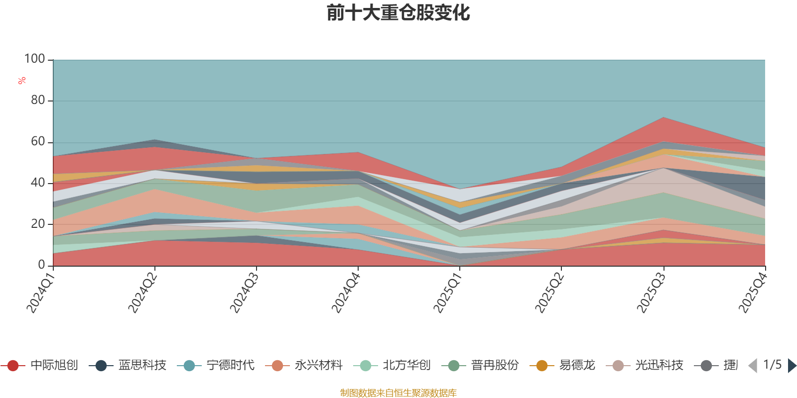 截至2025年四季度末,基金十大重仓股分别是阳光电源、中际旭创、新易盛、工业富联、东山精密、沪电股份、深南电路、立讯精密、中信证券、鹏辉能源。