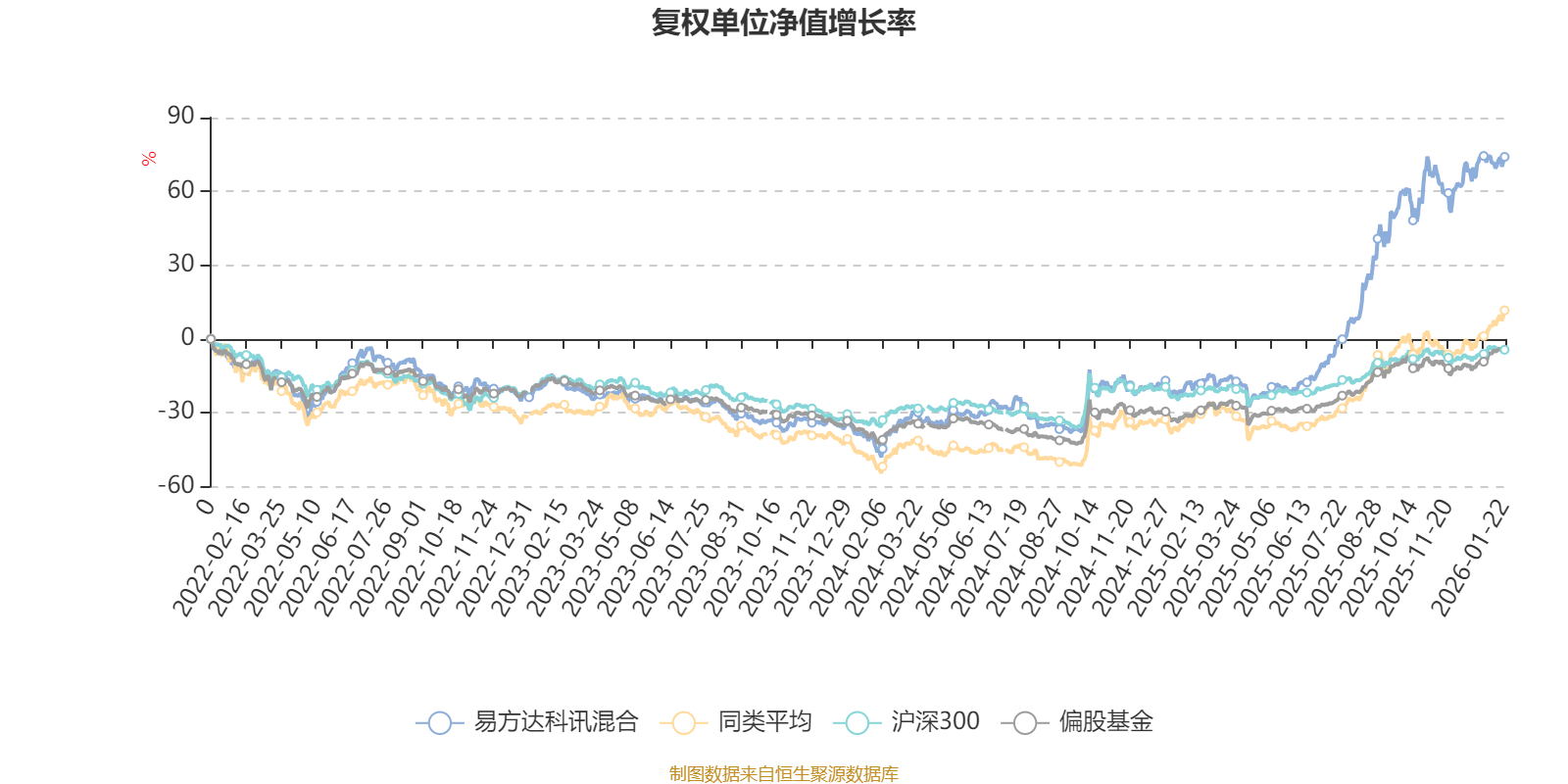 截至1月22日,易方达科讯混合近三个月复权单位净值增长率为11.53%,位于同类可比基金150/229;近半年复权单位净值增长率为74.21%,位于同类可比基金31/229;近一年复权单位净值增长率为110.97%,位于同类可比基金11/222;近三年复权单位净值增长率为109.45%,位于同类可比基金18/165。
