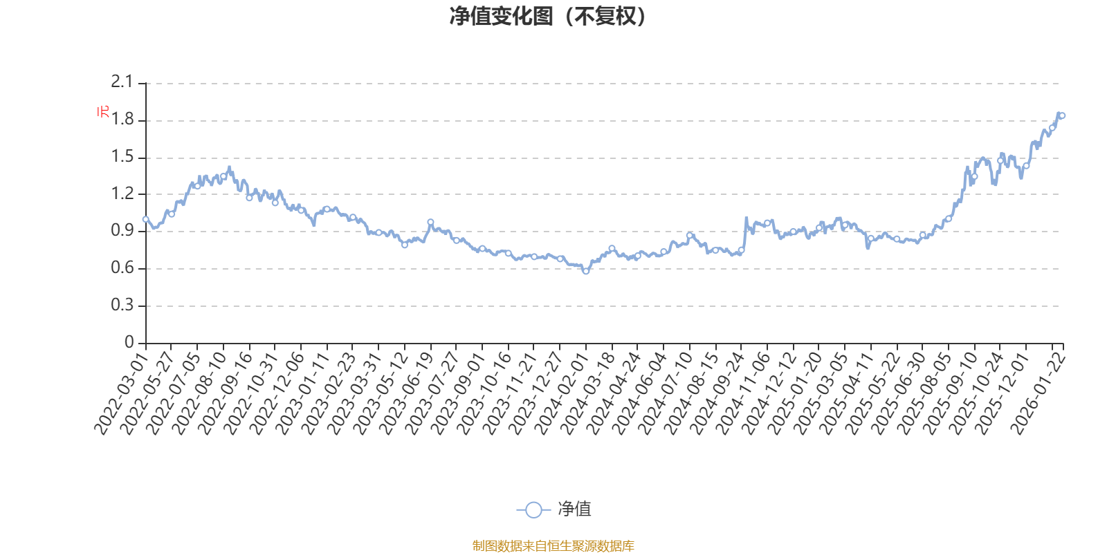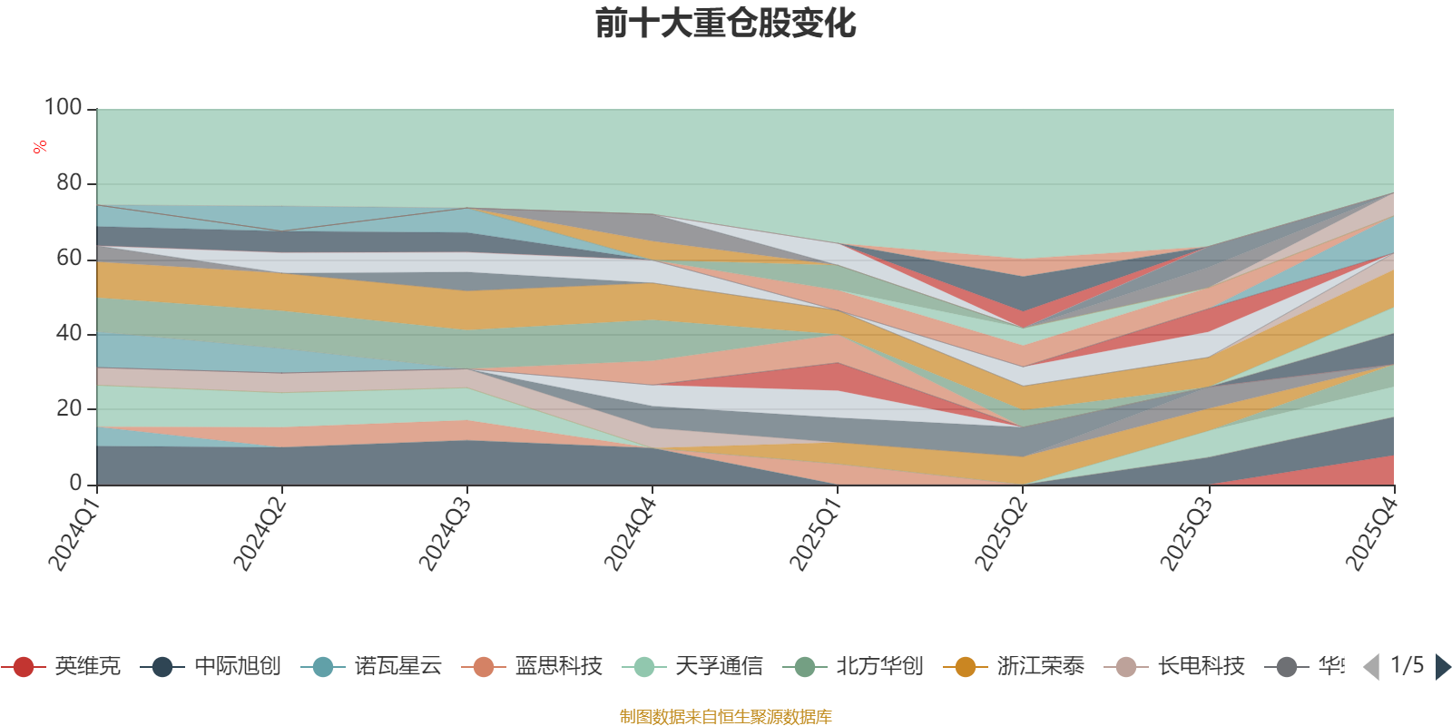 该基金持股集中度较高,近2年前十大重仓股集中度长期超过60%。截至2025年四季度末,基金十大重仓股分别是中际旭创、新易盛、阳光电源、迈为股份、天孚通信、英维克、长川科技、亚翔集成、北方华创、寒武纪。