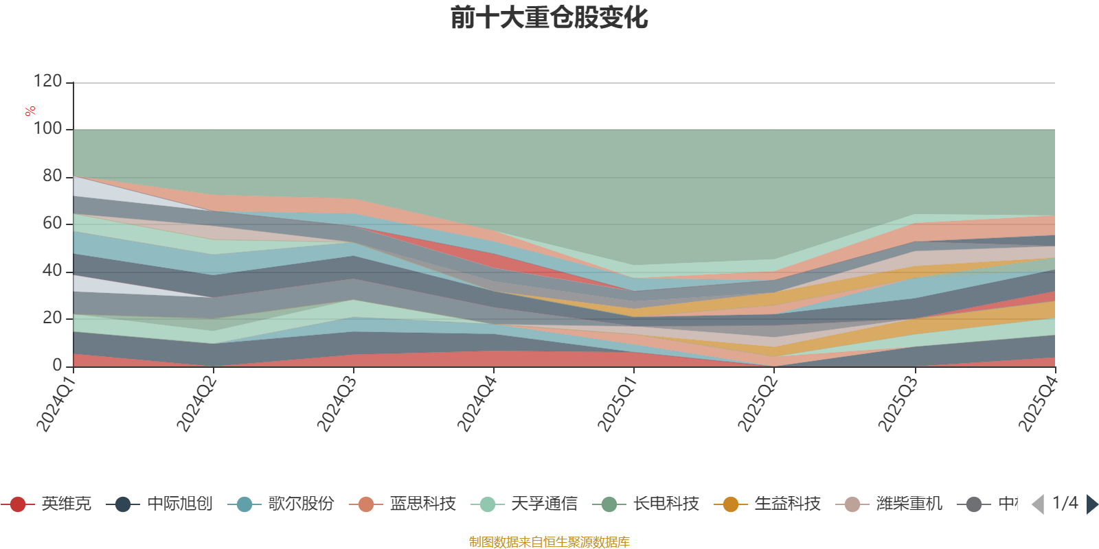 截至2025年四季度末,基金十大重仓股分别是中际旭创、新易盛、深南电路、天孚通信、生益科技、信维通信、立讯精密、东山精密、环旭电子、英维克。
