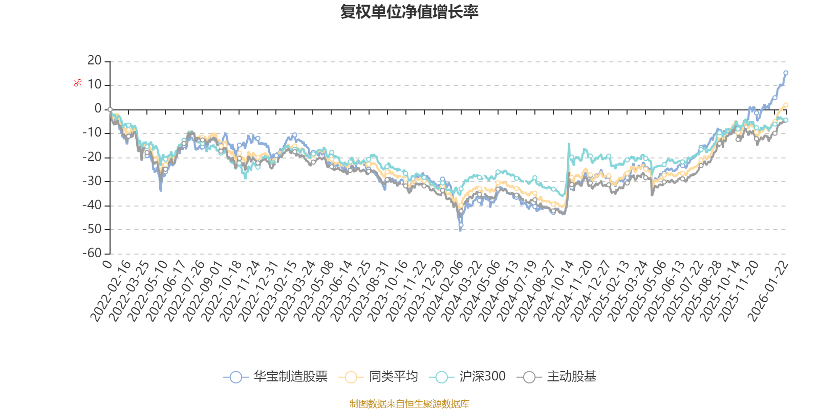 截至1月22日,华宝制造股票近三个月复权单位净值增长率为25.44%,位于同类可比基金7/167;近半年复权单位净值增长率为36.74%,位于同类可比基金51/167;近一年复权单位净值增长率为63.76%,位于同类可比基金13/165;近三年复权单位净值增长率为33.77%,位于同类可比基金48/156。