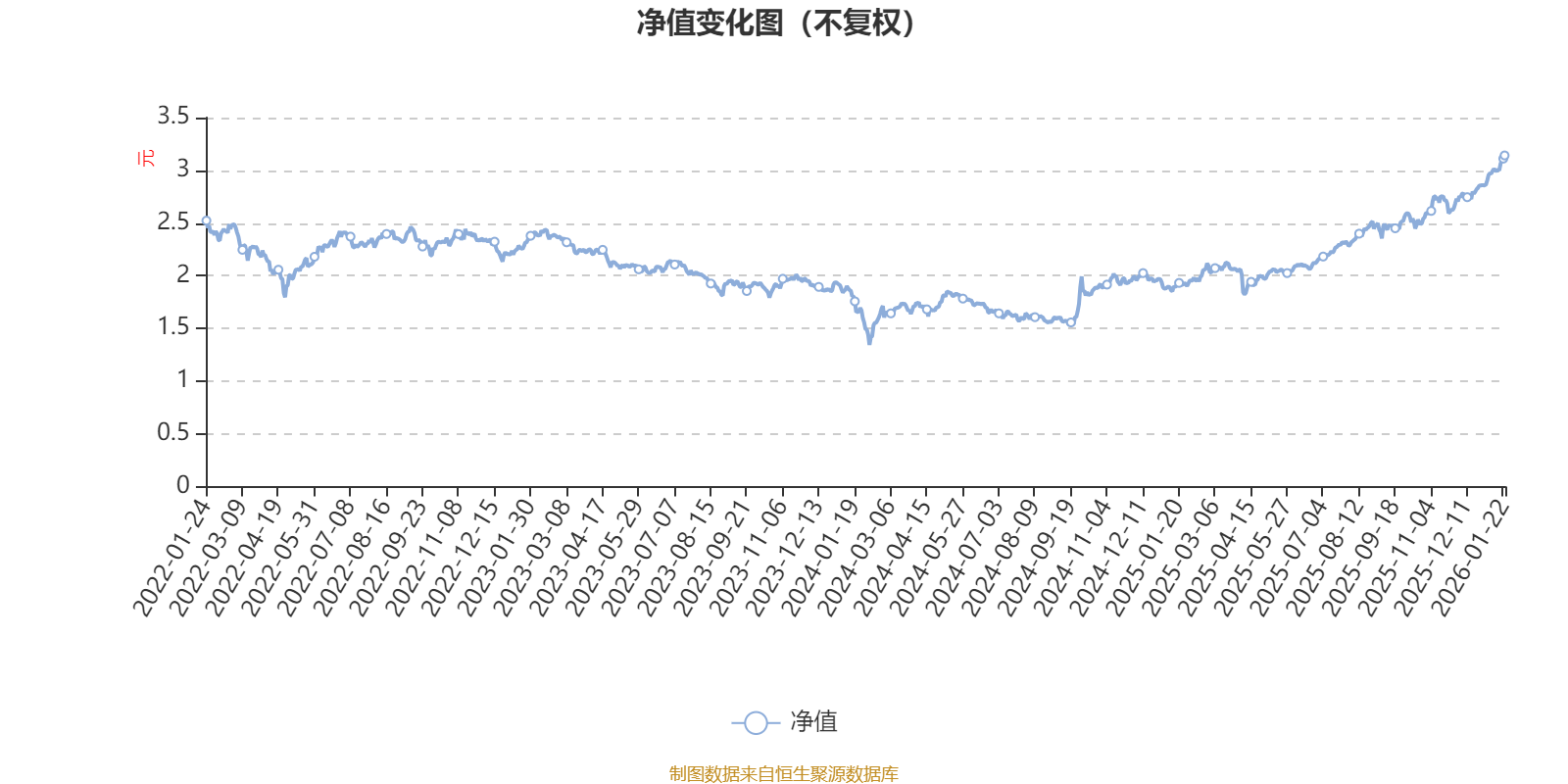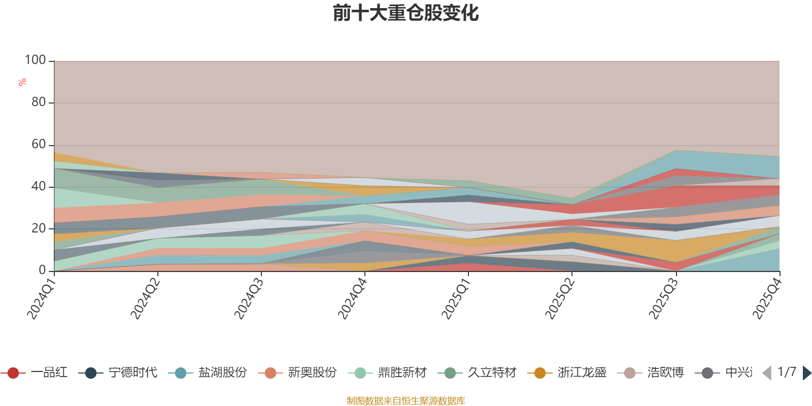 截至2025年四季度末,基金十大重仓股分别是盐湖股份、利安隆、法兰泰克、中国巨石、永创智能、杰瑞股份、鼎胜新材、久立特材、一拖股份、中信特钢。