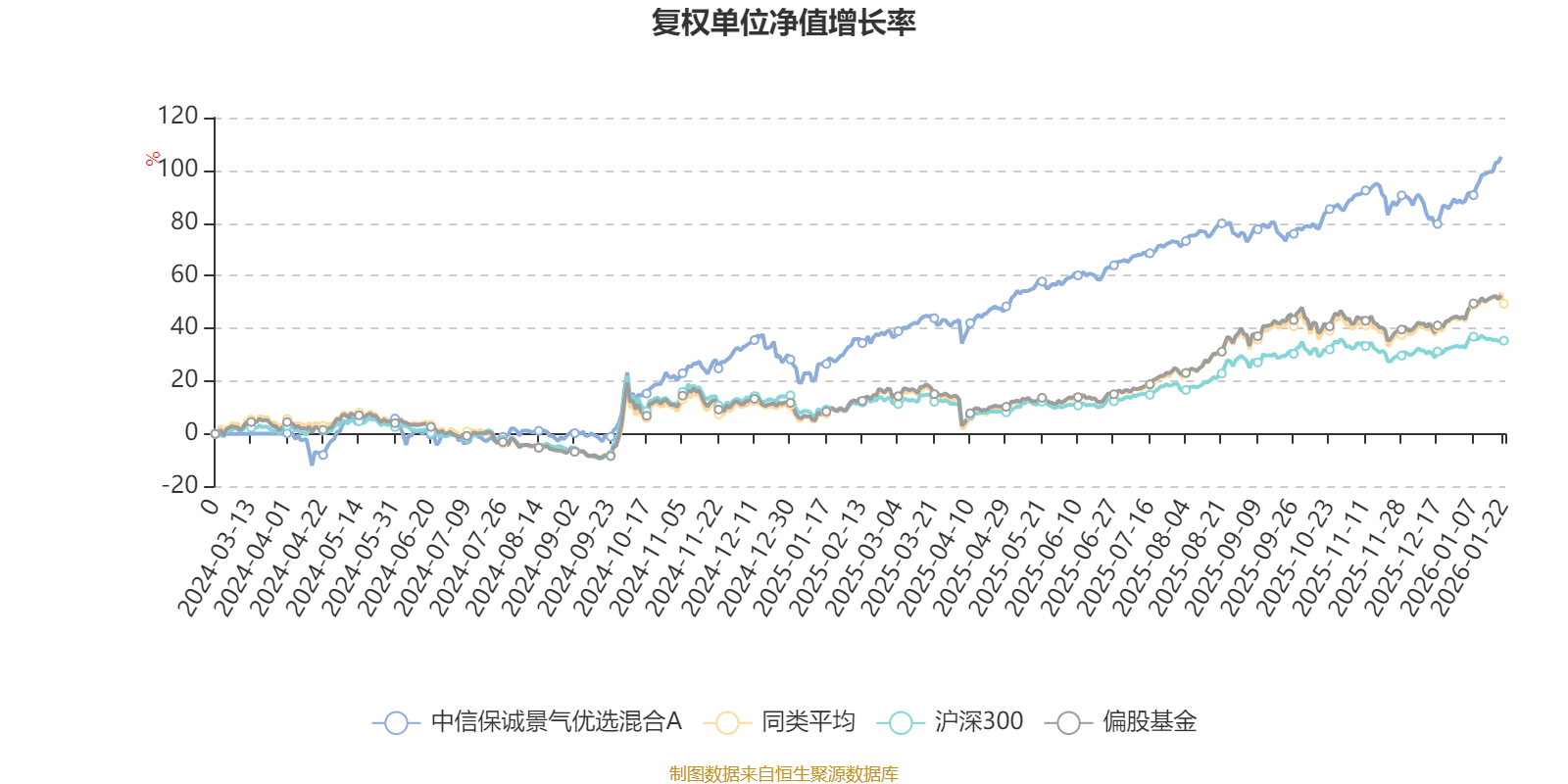 截至1月21日,中信保诚景气优选混合A近三个月复权单位净值增长率为11.86%,位于同类可比基金167/621;近半年复权单位净值增长率为19.81%,位于同类可比基金411/621;近一年复权单位净值增长率为60.09%,位于同类可比基金102/613。