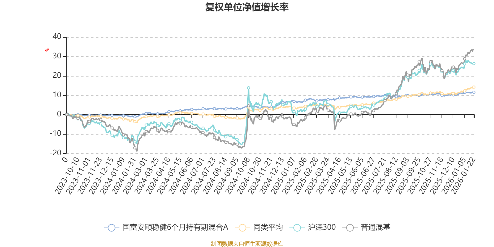 截至1月22日,国富安颐稳健6个月持有期混合A近三个月复权单位净值增长率为1.11%,位于同类可比基金484/629;近半年复权单位净值增长率为1.58%,位于同类可比基金542/629;近一年复权单位净值增长率为4.88%,位于同类可比基金496/626。