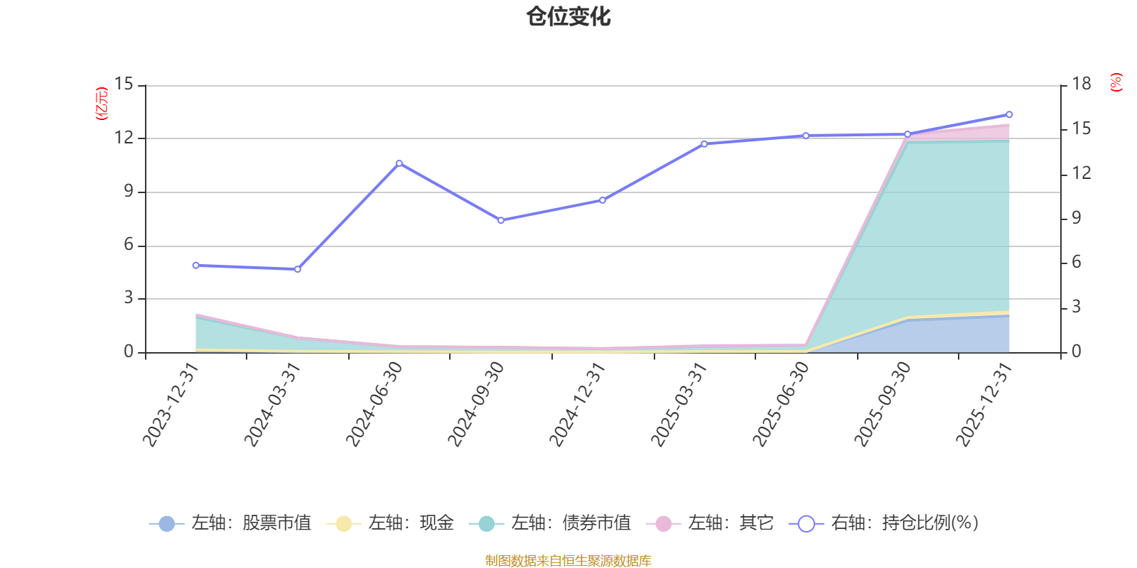 据定期报告数据统计,成立以来平均股票仓位为11.42%,同类平均为19.2%。2025年末基金达到16.03%的最高仓位,2024年一季度末最低,为5.61%。