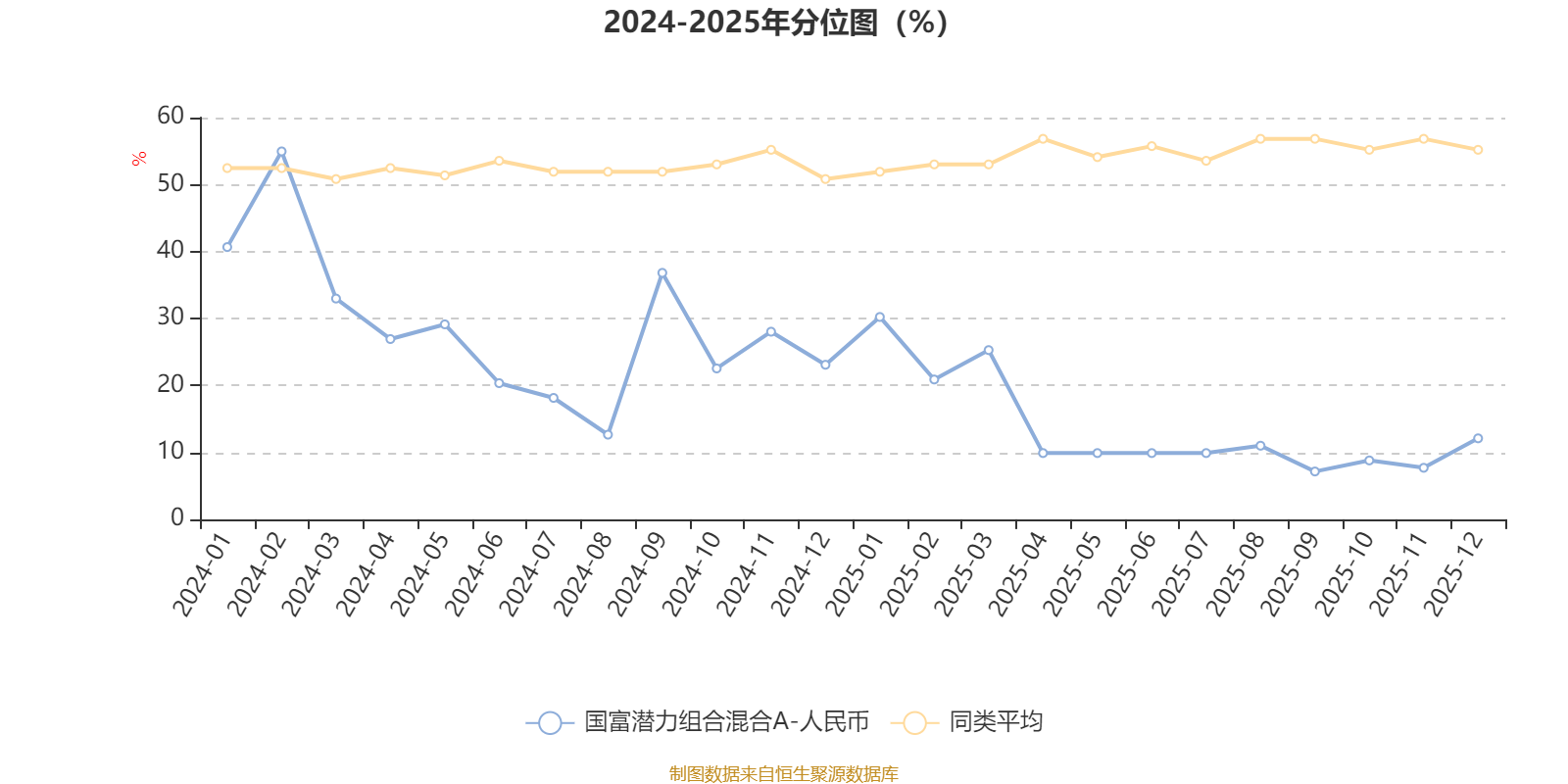 通过所选区间该基金净值增长率分位图,可以观察该基金与同类基金业绩比较情况。图为坐标原点到区间内某时点的净值增长率在同类基金中的分位数。