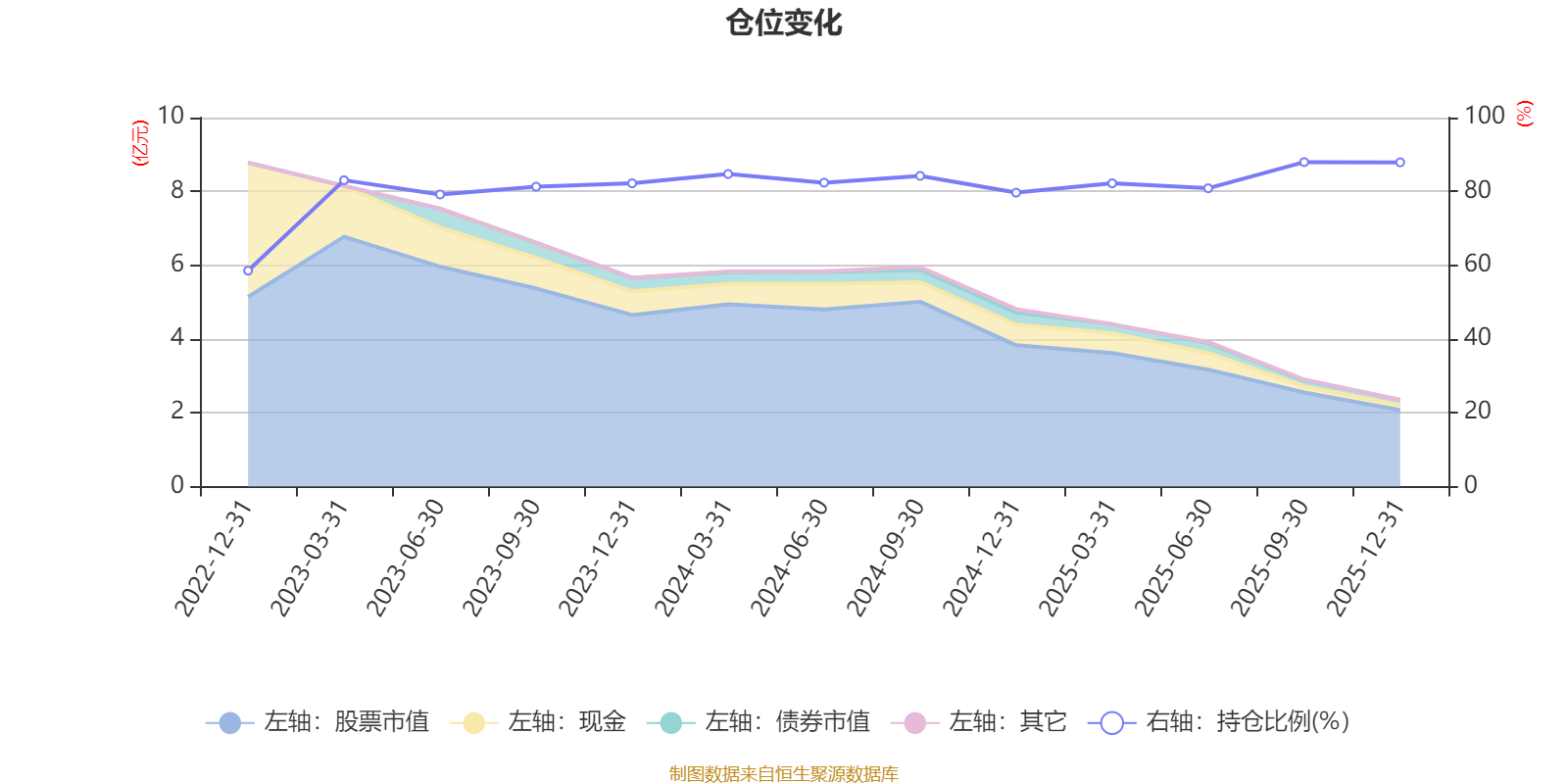 据定期报告数据统计,近三年平均股票仓位为82.95%,同类平均为85.83%。2025年三季度末基金达到87.94%的最高仓位,2022年末最低,为58.51%。