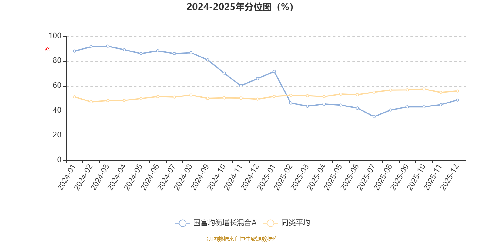 通过所选区间该基金净值增长率分位图,可以观察该基金与同类基金业绩比较情况。图为坐标原点到区间内某时点的净值增长率在同类基金中的分位数。