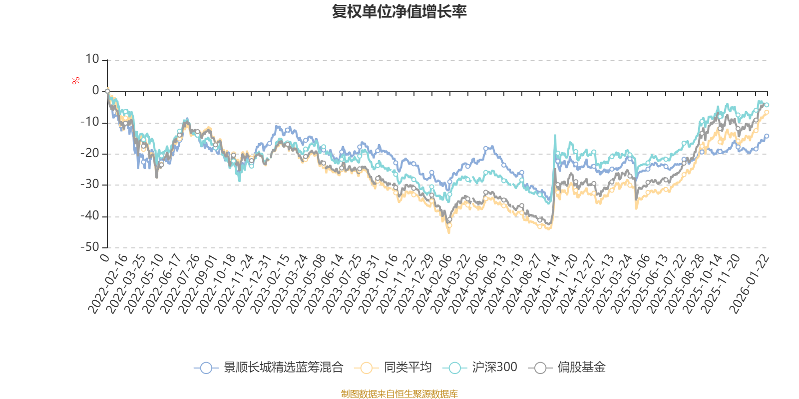 截至1月22日,景顺长城精选蓝筹混合近三个月复权单位净值增长率为6.41%,位于同类可比基金125/185;近半年复权单位净值增长率为9.49%,位于同类可比基金155/185;近一年复权单位净值增长率为15.06%,位于同类可比基金172/183;近三年复权单位净值增长率为-3.37%,位于同类可比基金144/176。