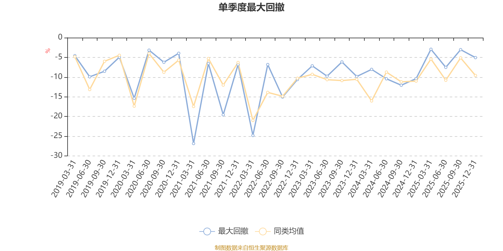 截至1月22日,基金近三年最大回撤为26.61%,同类可比基金排名24/177。单季度最大回撤出现在2021年一季度,为26.89%。