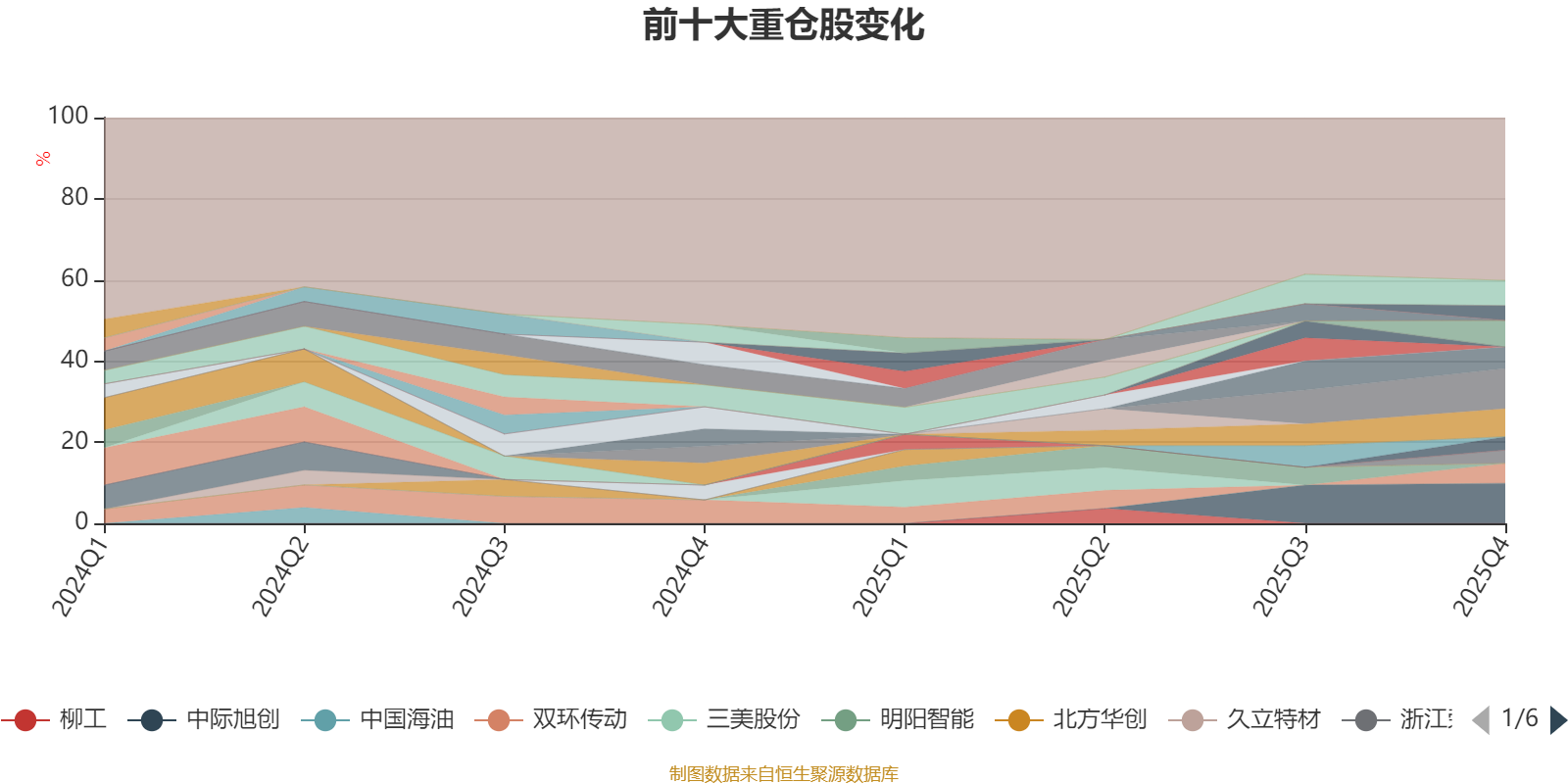 截至2025年四季度末,基金十大重仓股分别是中际旭创、新易盛、沪电股份、东山精密、深南电路、工业富联、双环传动、京仪装备、金盘科技、浙江荣泰。