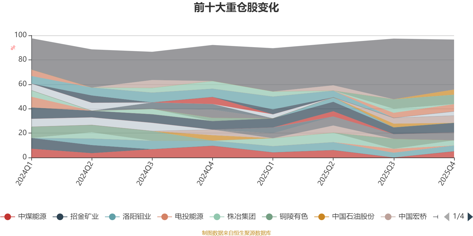 该基金持股集中度较高。截至2025年四季度末,基金十大重仓股分别是紫金矿业、西部矿业、金诚信、兖矿能源、中金黄金、中煤能源、洛阳钼业、株冶集团、华菱钢铁、山东黄金。
