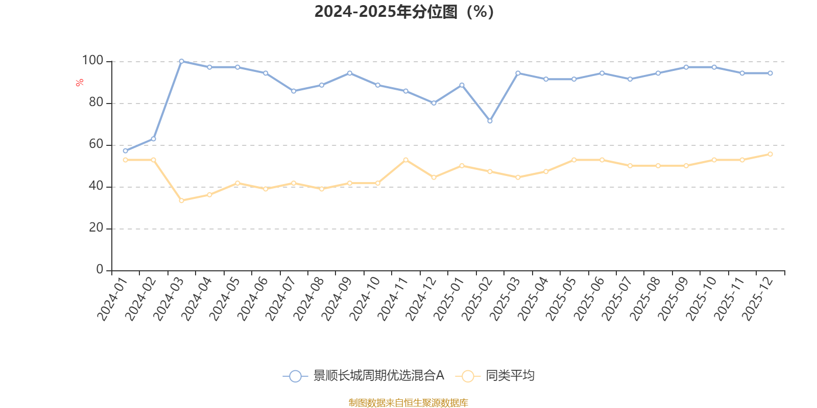 通过所选区间该基金净值增长率分位图,可以观察该基金与同类基金业绩比较情况。图为坐标原点到区间内某时点的净值增长率在同类基金中的分位数。