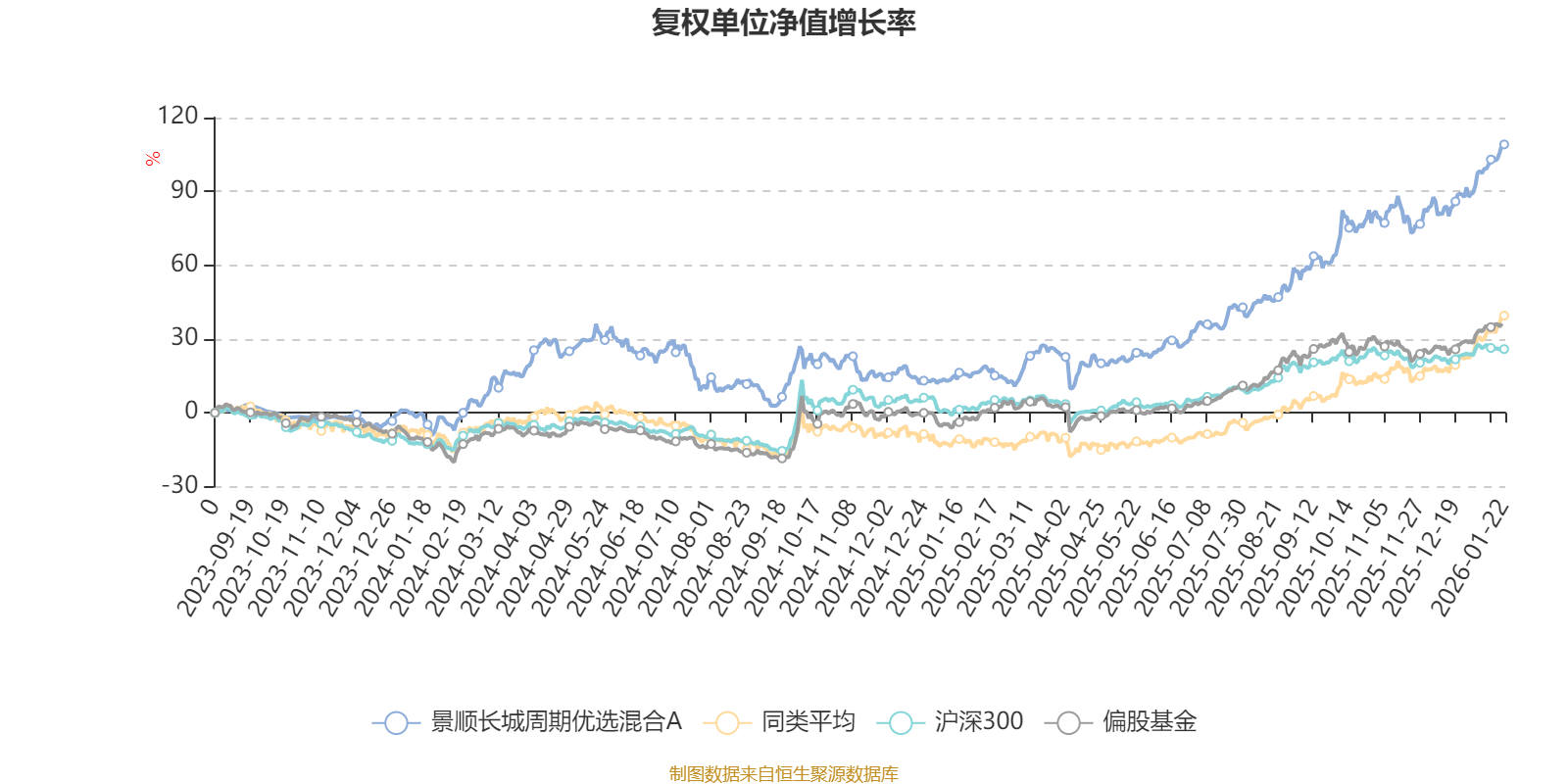 截至1月22日,景顺长城周期优选混合A近三个月复权单位净值增长率为19.25%,位于同类可比基金27/49;近半年复权单位净值增长率为46.16%,位于同类可比基金24/49;近一年复权单位净值增长率为81.42%,位于同类可比基金18/46。