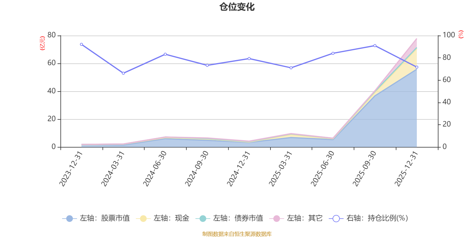 据定期报告数据统计,成立以来平均股票仓位为79.13%,同类平均为86.41%。2023年末基金达到92.13%的最高仓位,2024年一季度末最低,为66.25%。