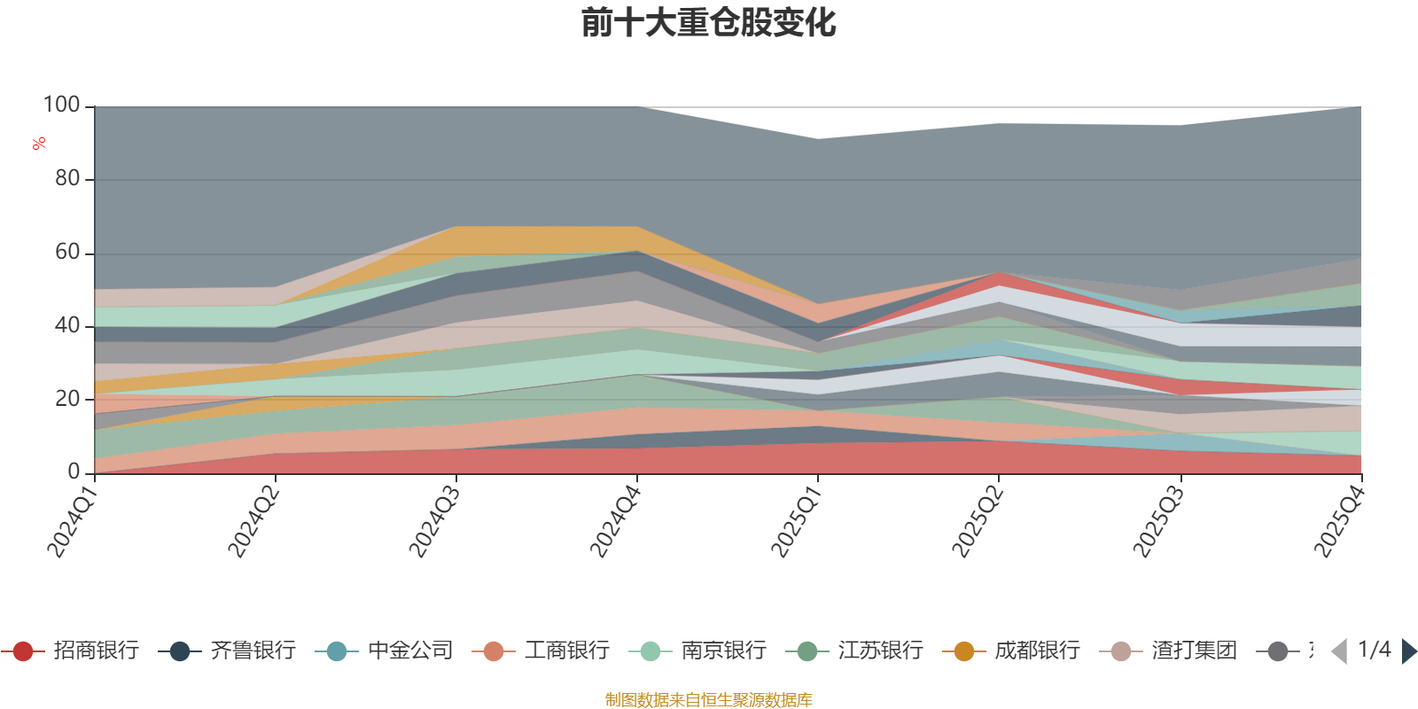 该基金持股集中度较高。截至2025年四季度末,基金十大重仓股分别是渣打集团、杭州银行、南京银行、中国人寿、中国太保、中国平安、新致软件、国泰海通、招商银行、交通银行。