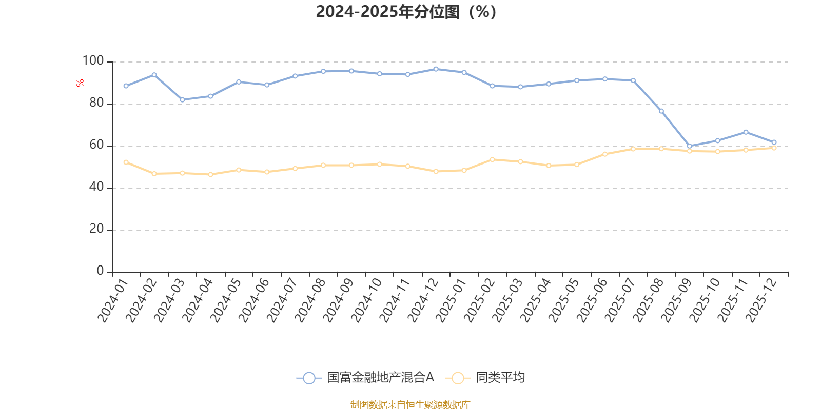 通过所选区间该基金净值增长率分位图,可以观察该基金与同类基金业绩比较情况。图为坐标原点到区间内某时点的净值增长率在同类基金中的分位数。
