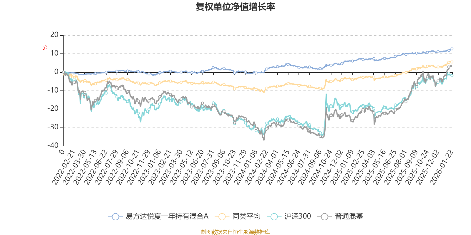 该基金属于偏债混合型基金。截至1月22日,单位净值为1.143元。基金经理是王成,目前管理的9只基金近一年均为正收益。其中,截至1月22日,易方达丰华债券A近一年复权单位净值增长率最高,达8.47%;易方达悦享一年持有混合A最低,为4.32%。